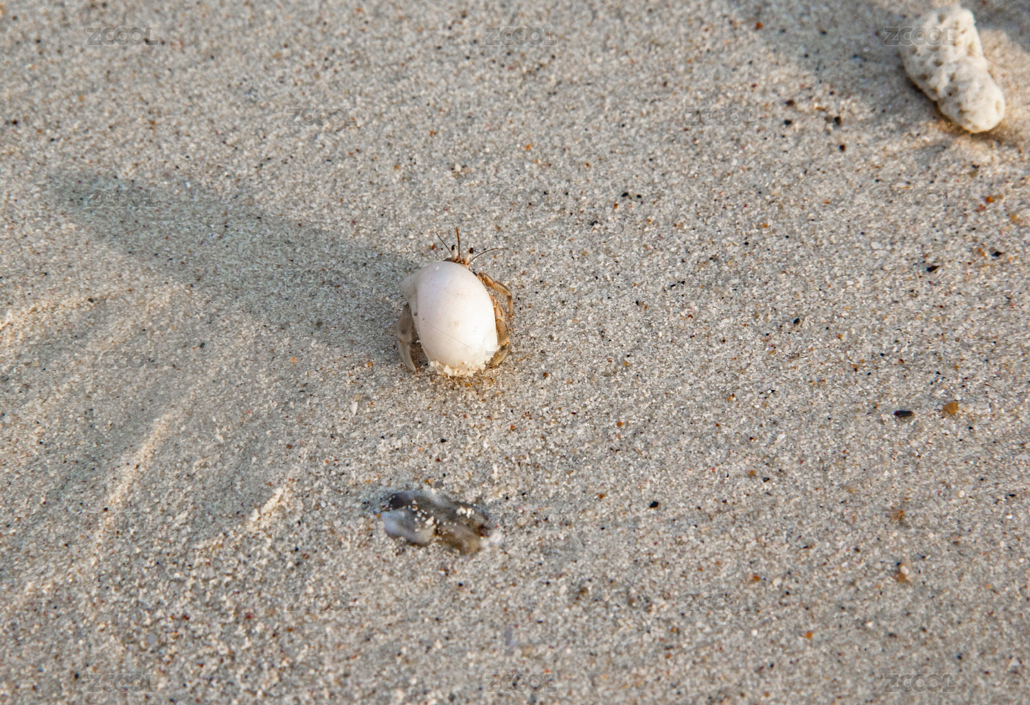 沙滩上的寄居蟹 白色贝壳