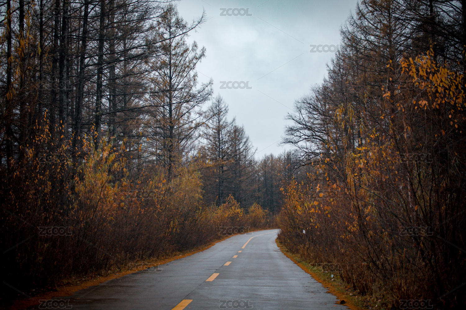 中国内蒙古兴安盟地区秋季森林和道路景观