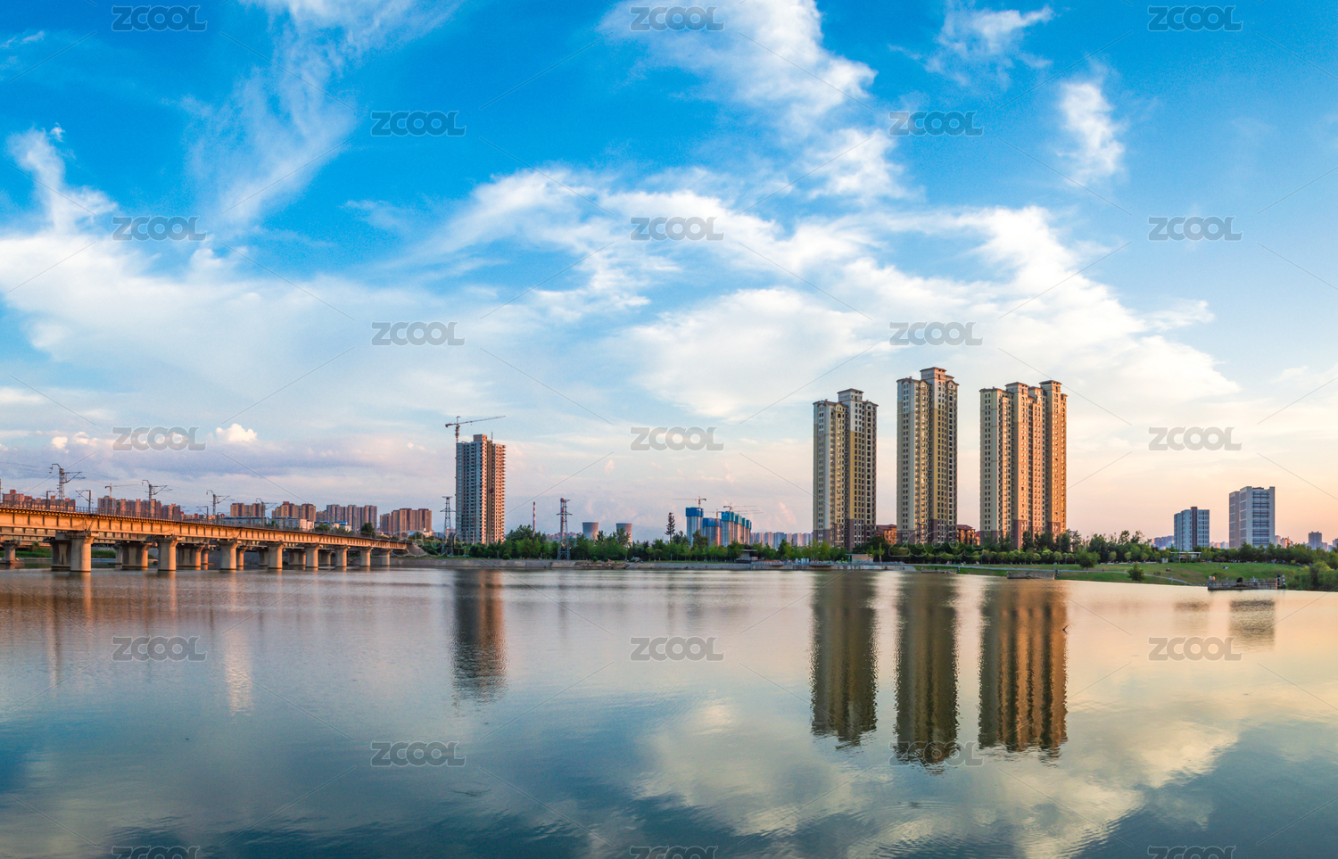 蓝天白云碧水生态园林城市内乡县城湍河城市