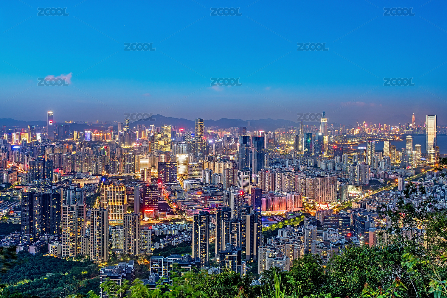 深圳前海湾和深圳湾夜景全景图/深圳后海商业中心