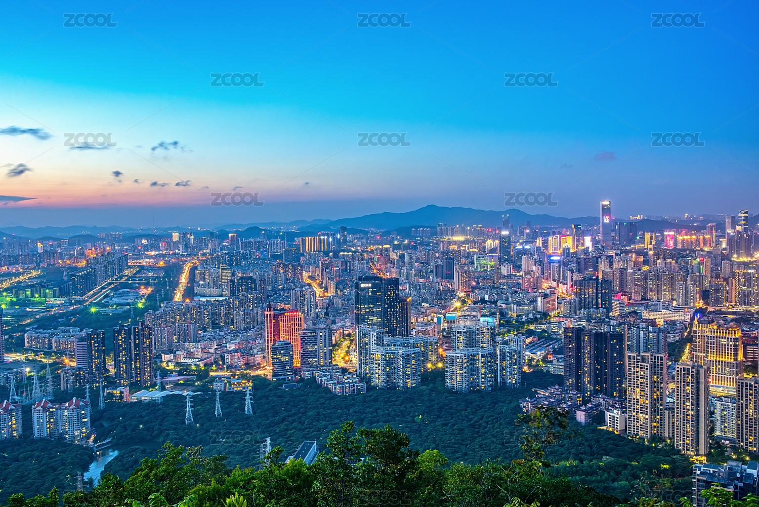 中国广东省深圳市南山区俯瞰南山城市夜景