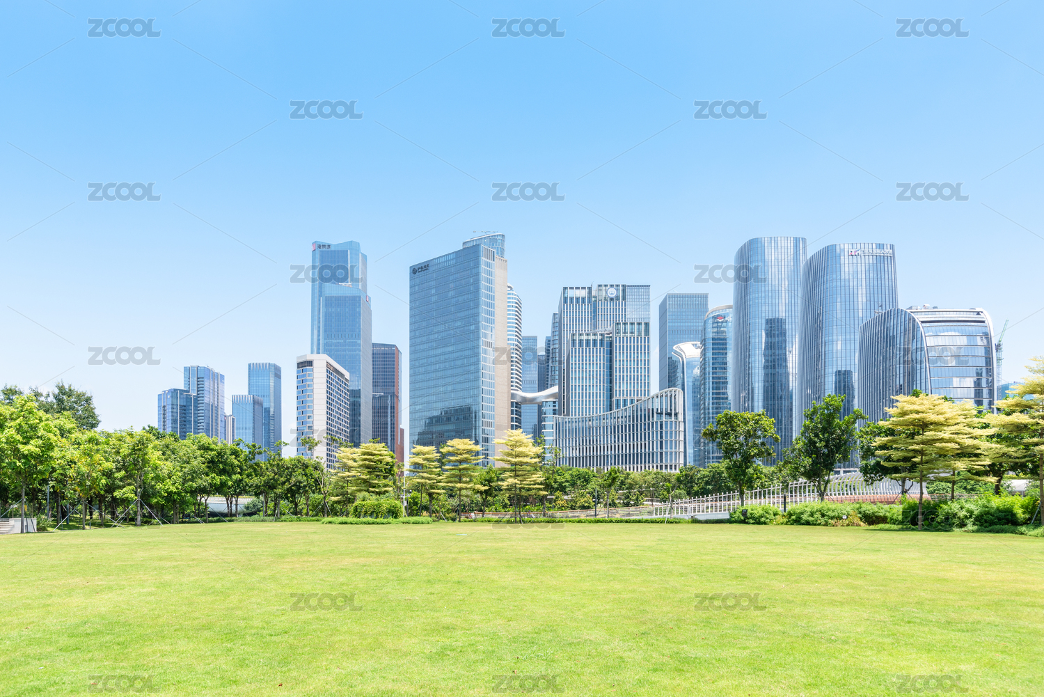 深圳桂湾公园摩天大楼和宽阔的草坪