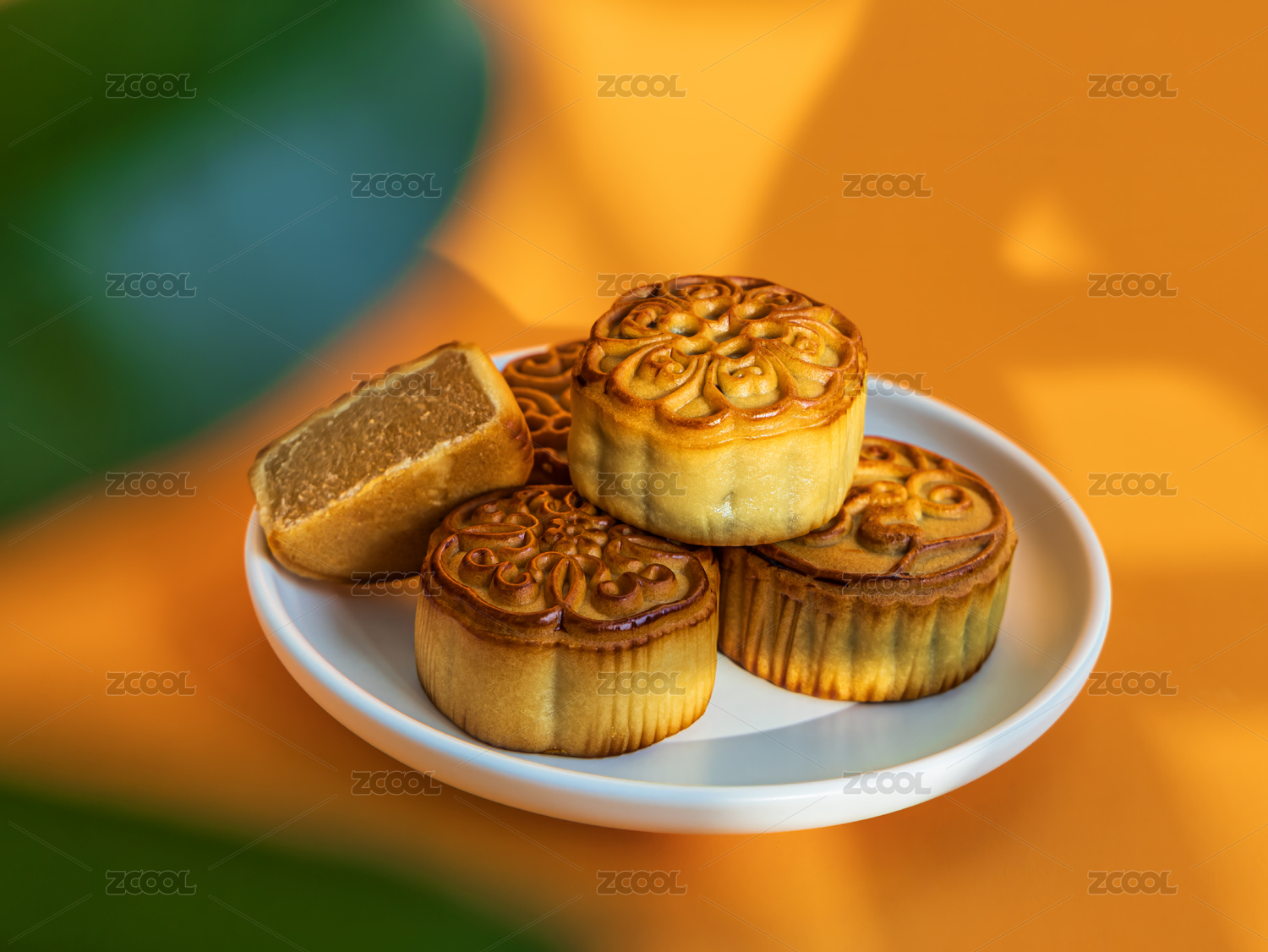 橙色卡纸上的月饼