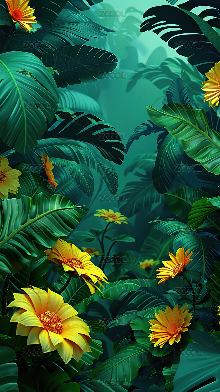 花卉满铺复古风格绿植背景