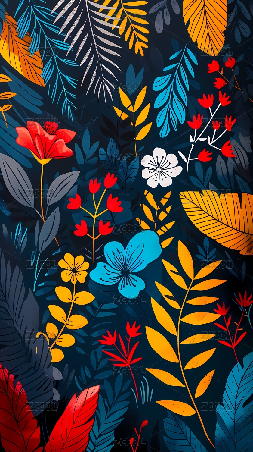 色彩鲜艳的花卉和植物插图