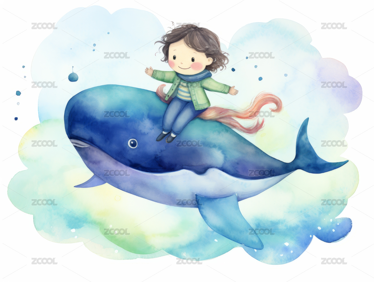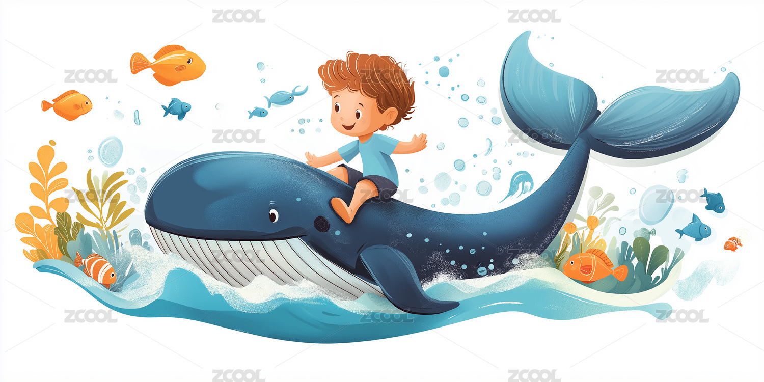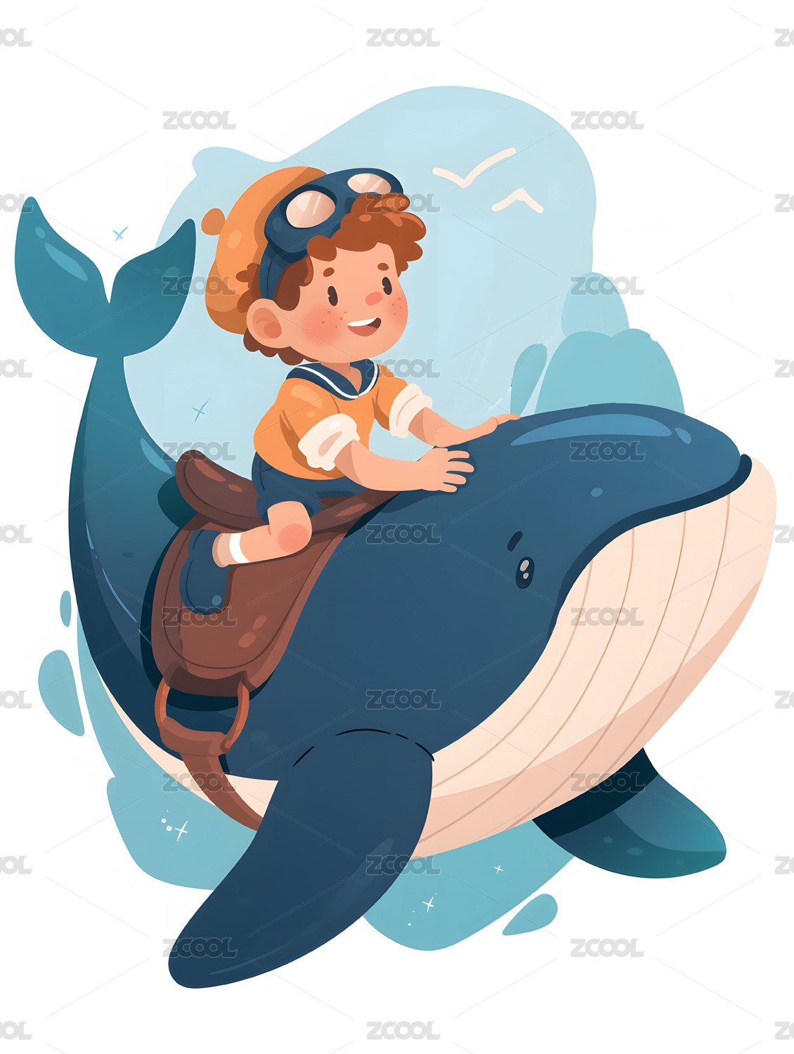 男孩,海豚,娃娃,卡通,Q版,可爱,大眼睛,小鱼,儿童