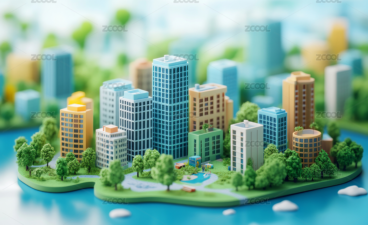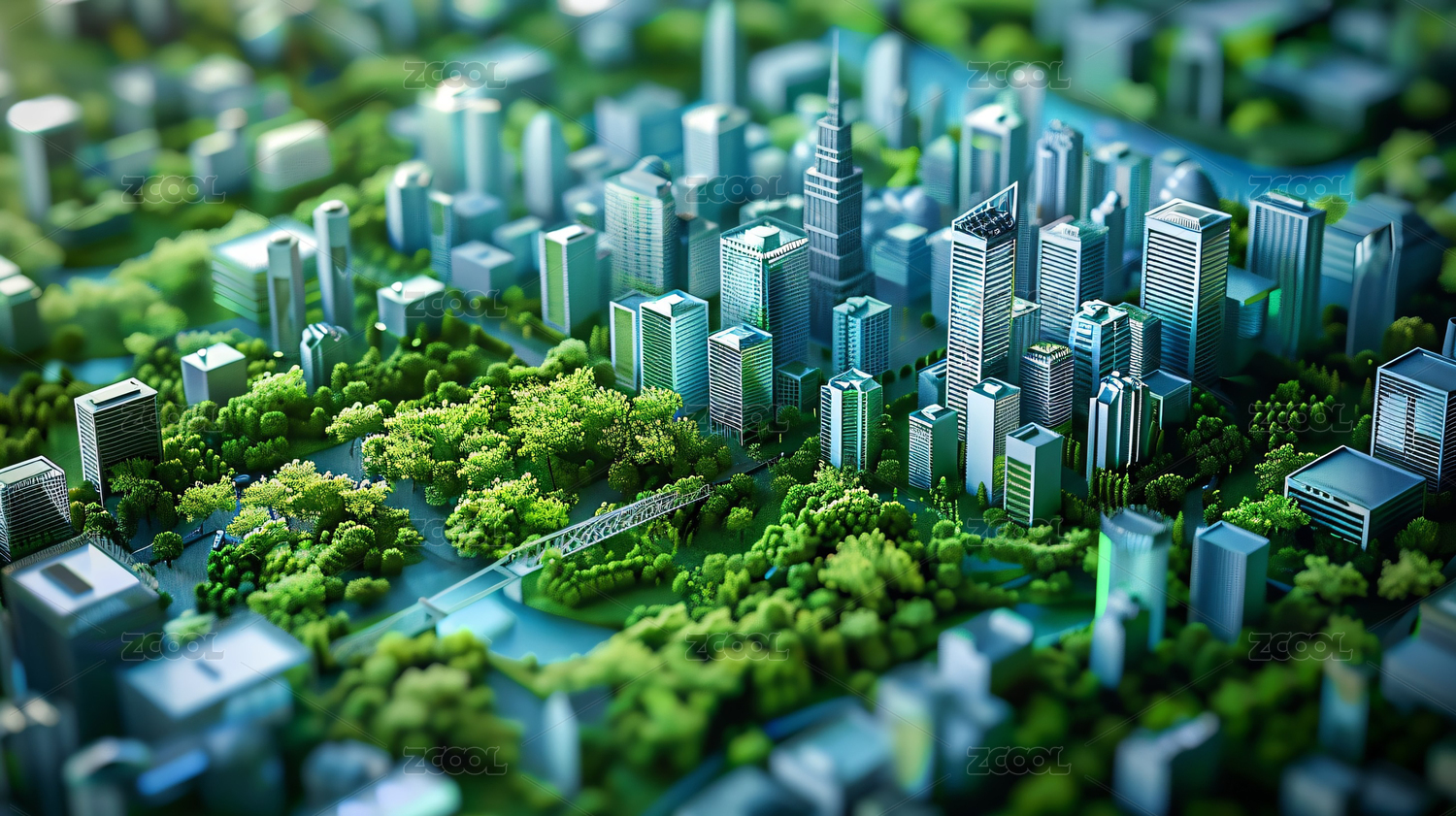 3D,旅游,城市,背景,小,场景,绿化,风景,环保,概念