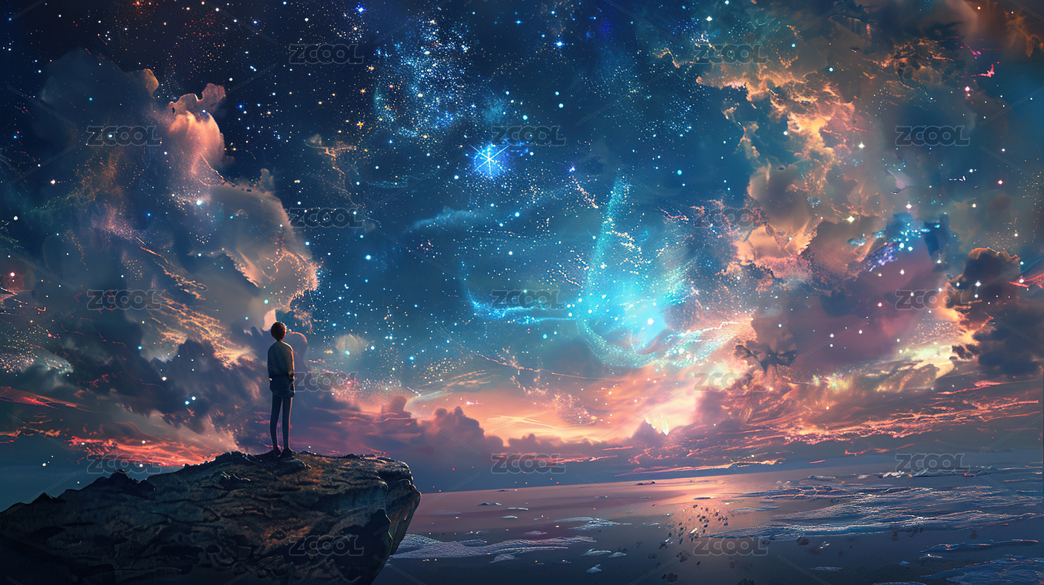 星空天空星云唯美震撼壁纸场景夜晚人物