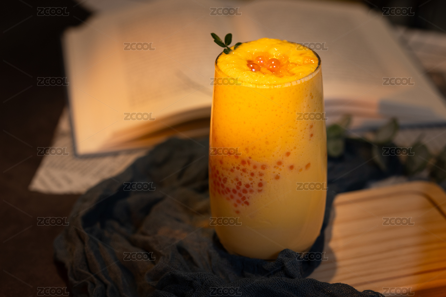 休闲吧白色桌子上放置的一杯牛奶饮料