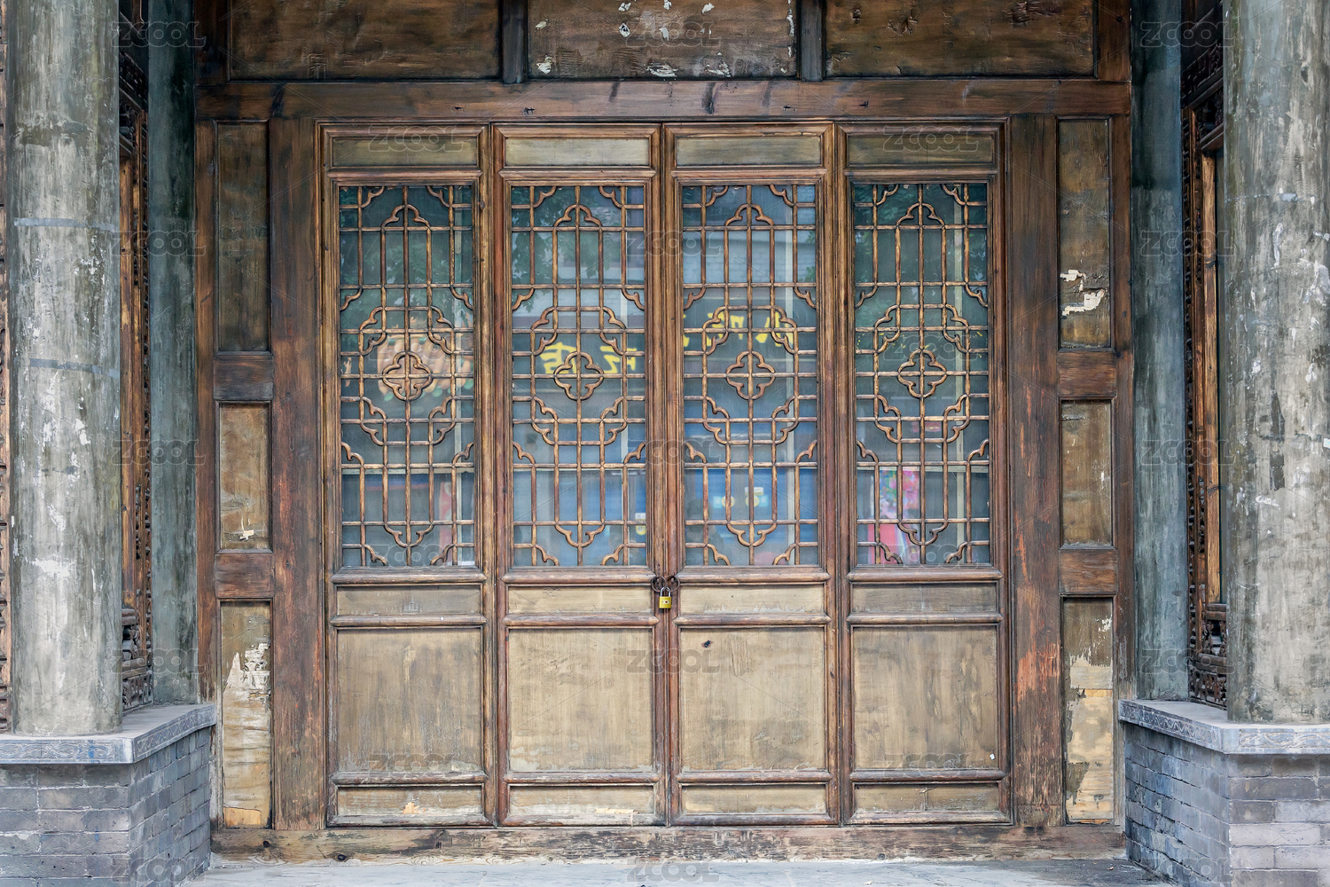 古代花窗木门