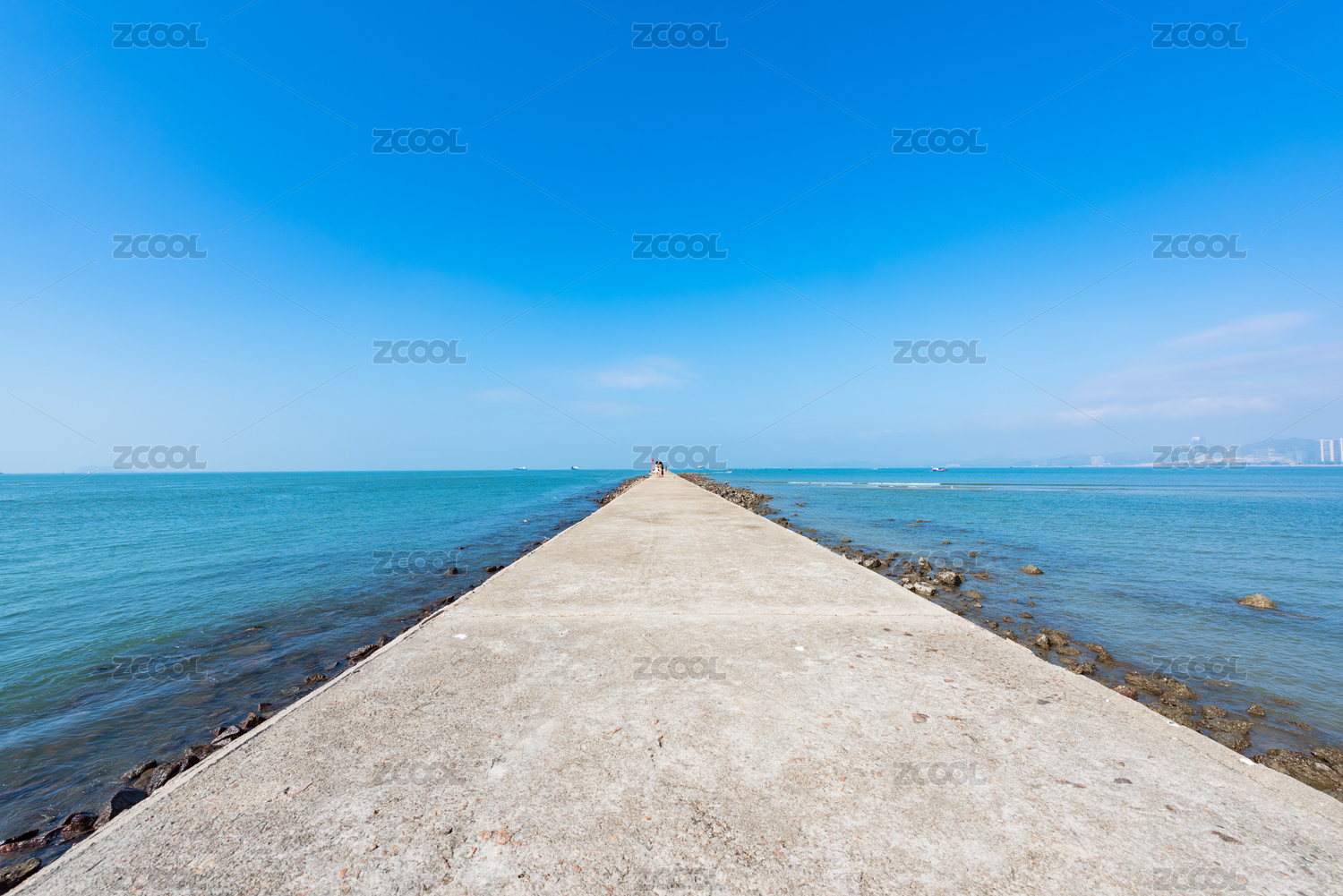 中国山东省烟台市蓬莱碧海蓝天防波堤风光