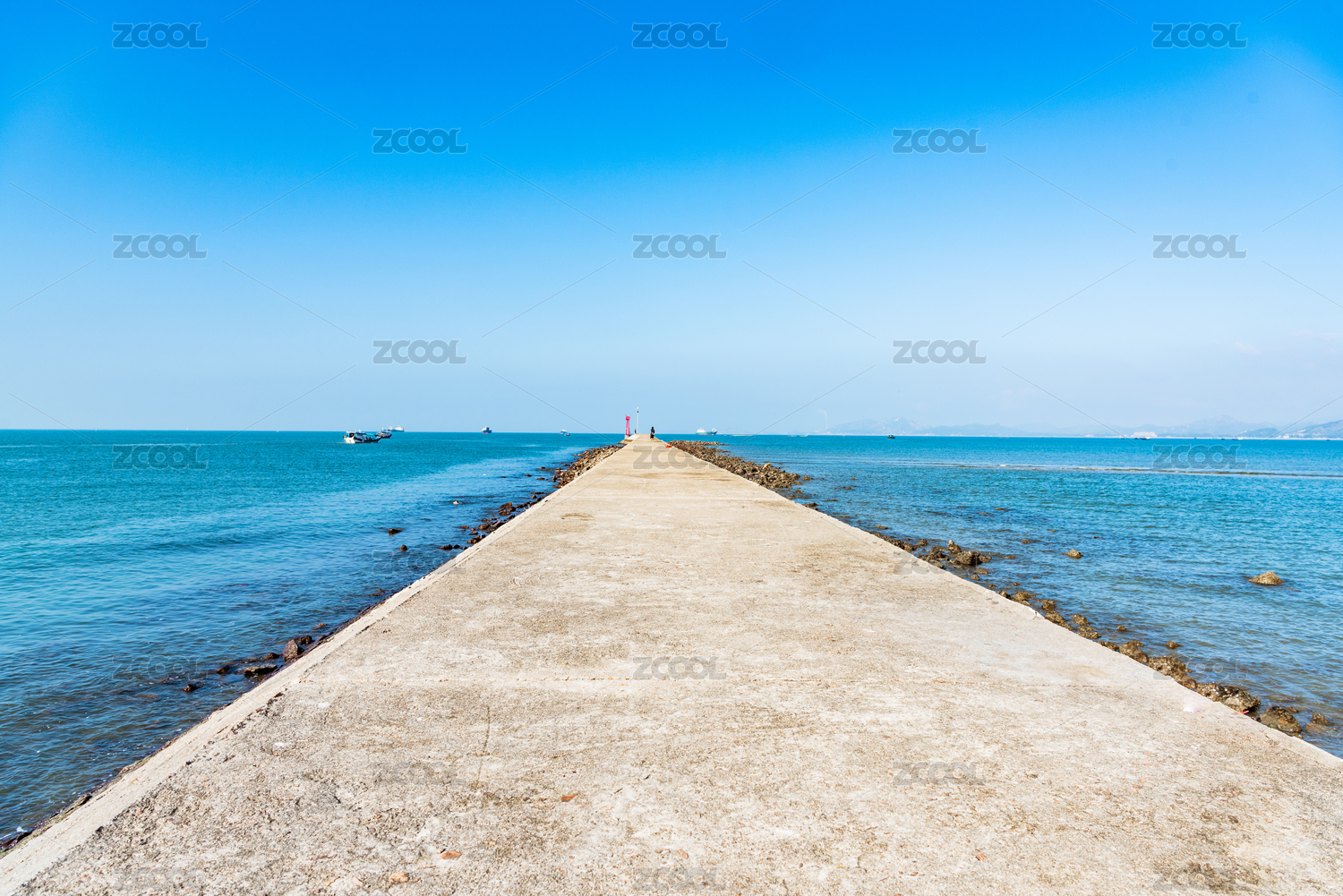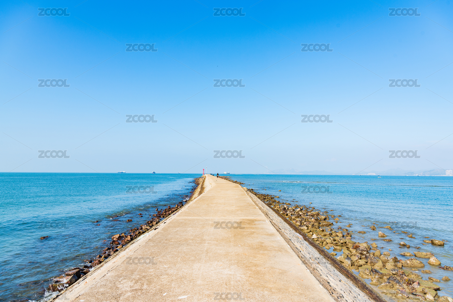 中国山东省烟台市蓬莱碧海蓝天防波堤