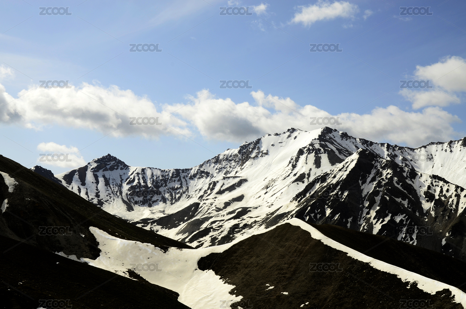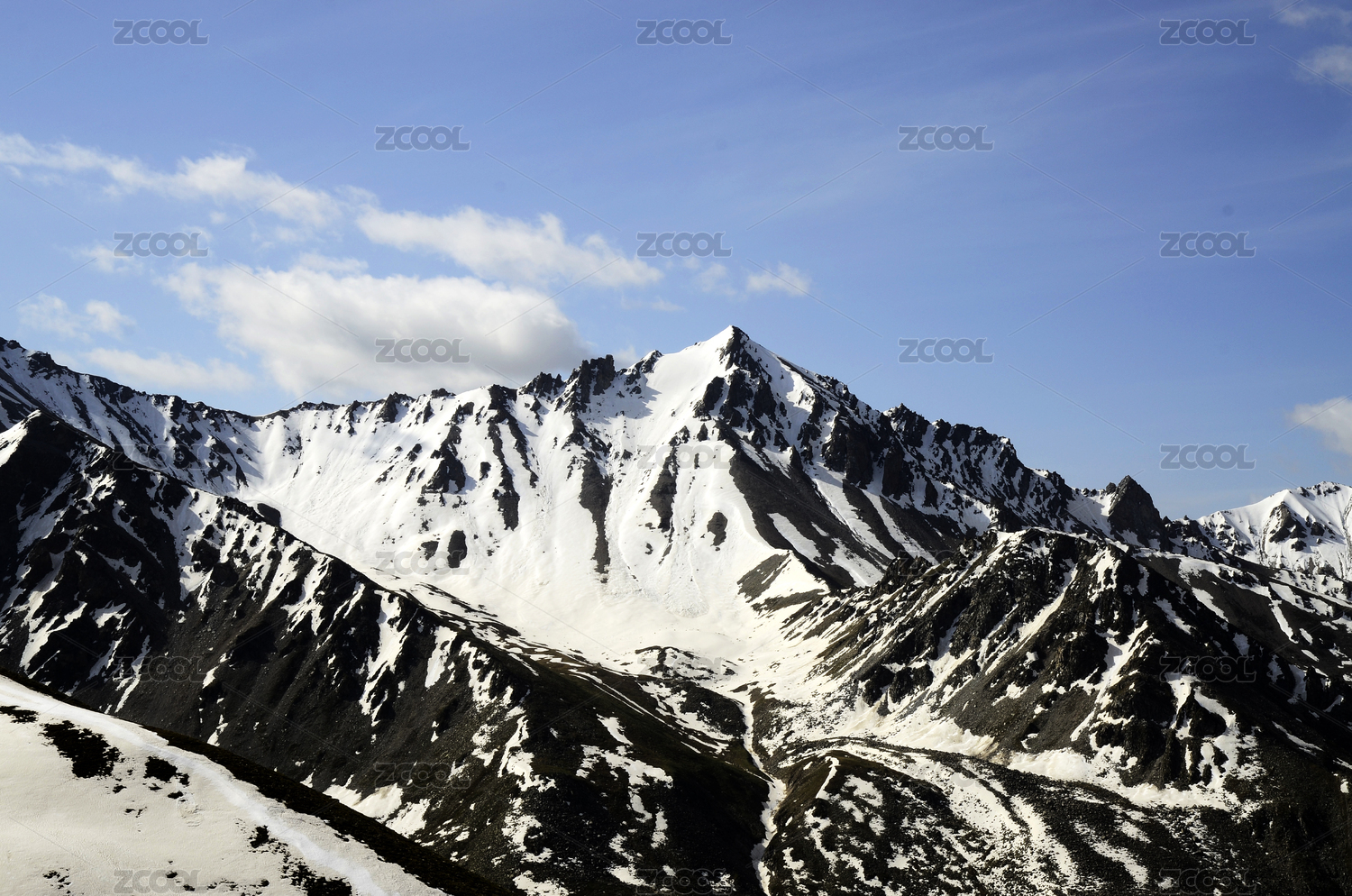 中国新疆夏季蓝天白云下G217独库公路沿途高山草原