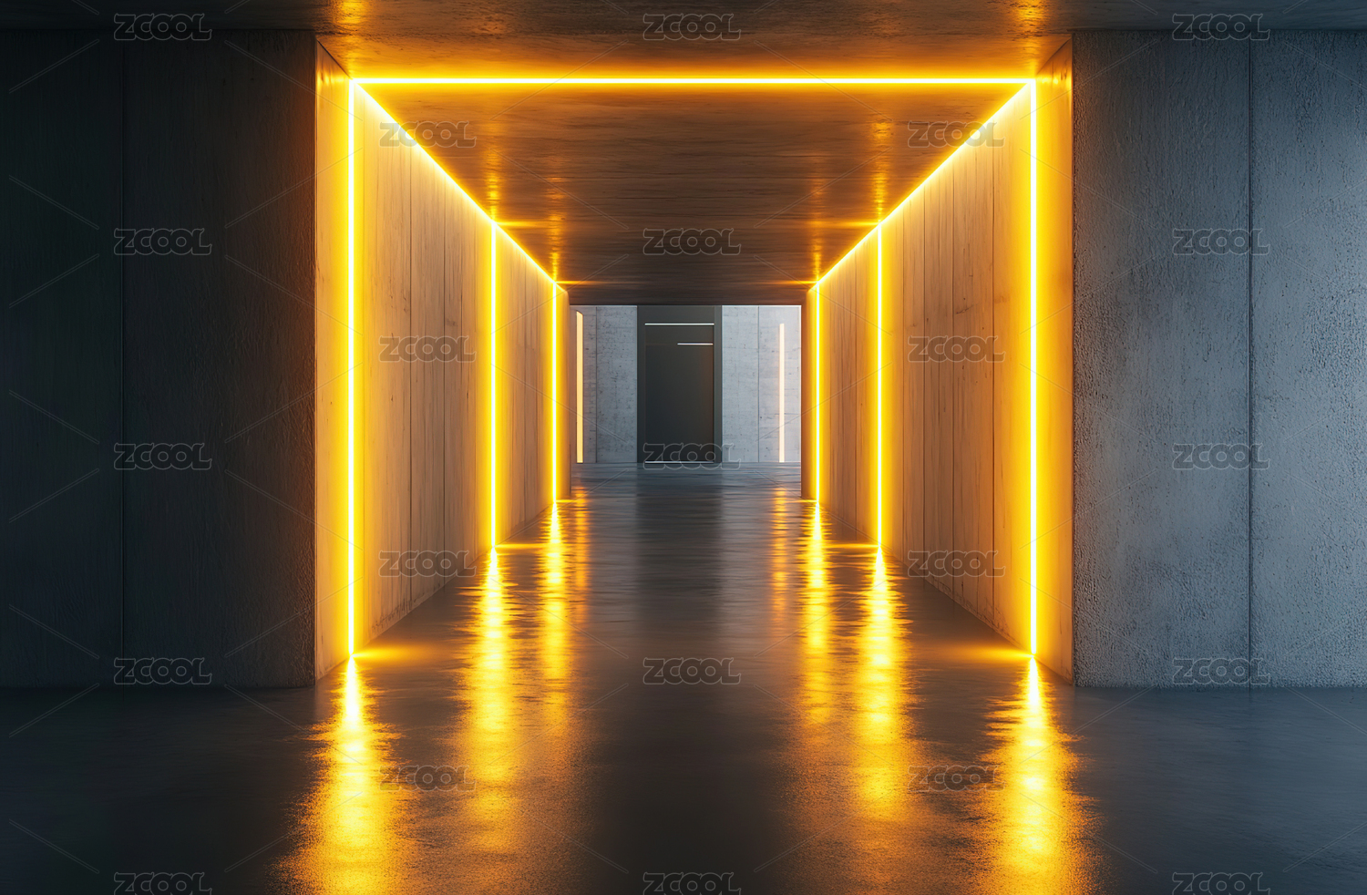 霓虹灯照亮的现代走廊