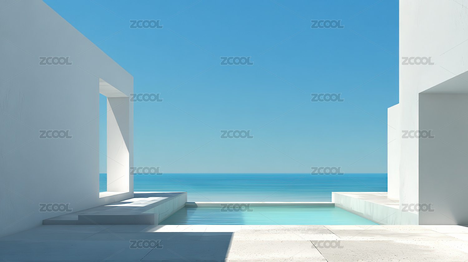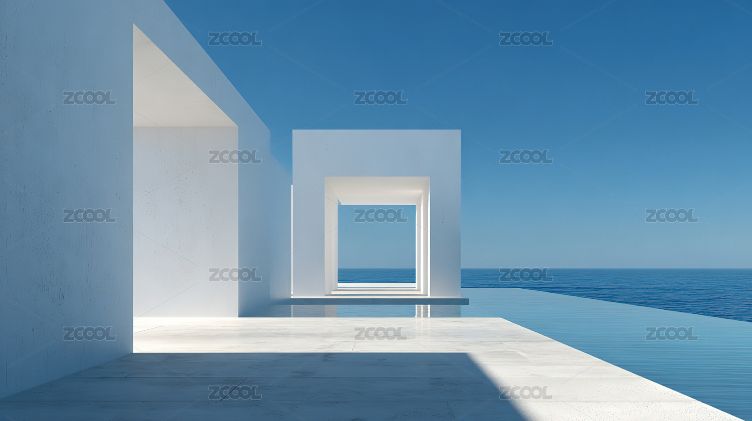 极简白建筑与碧海蓝天