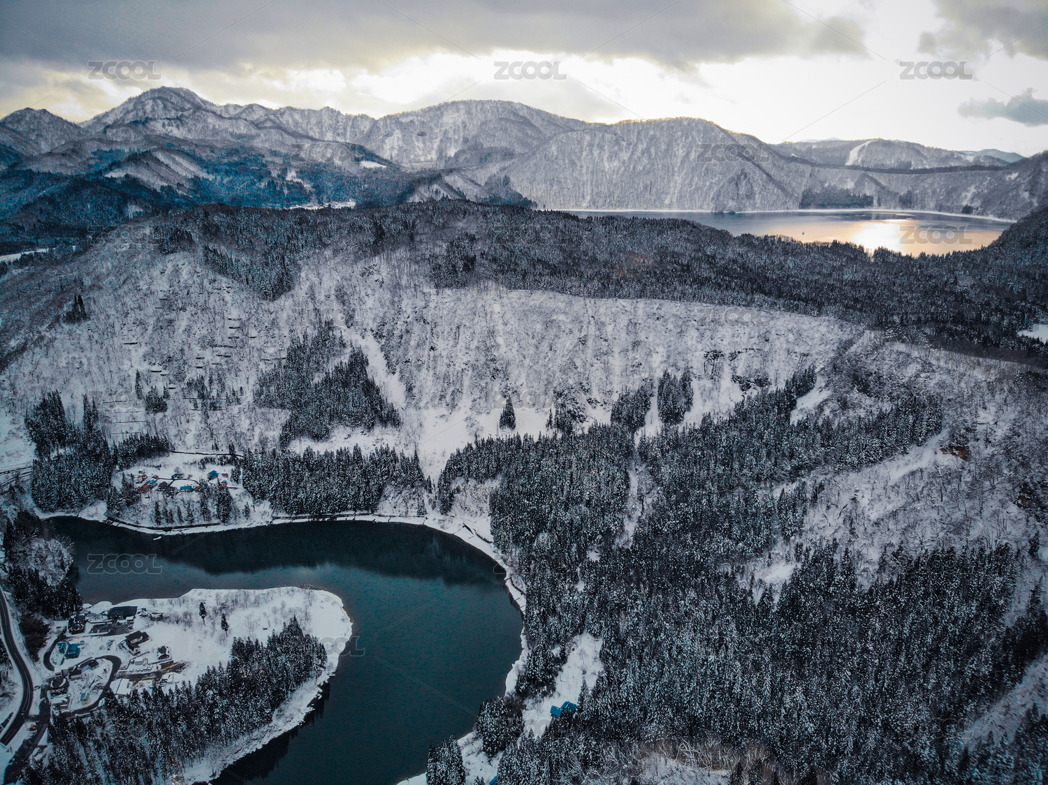 日本福岛县只见川的河流航拍景观