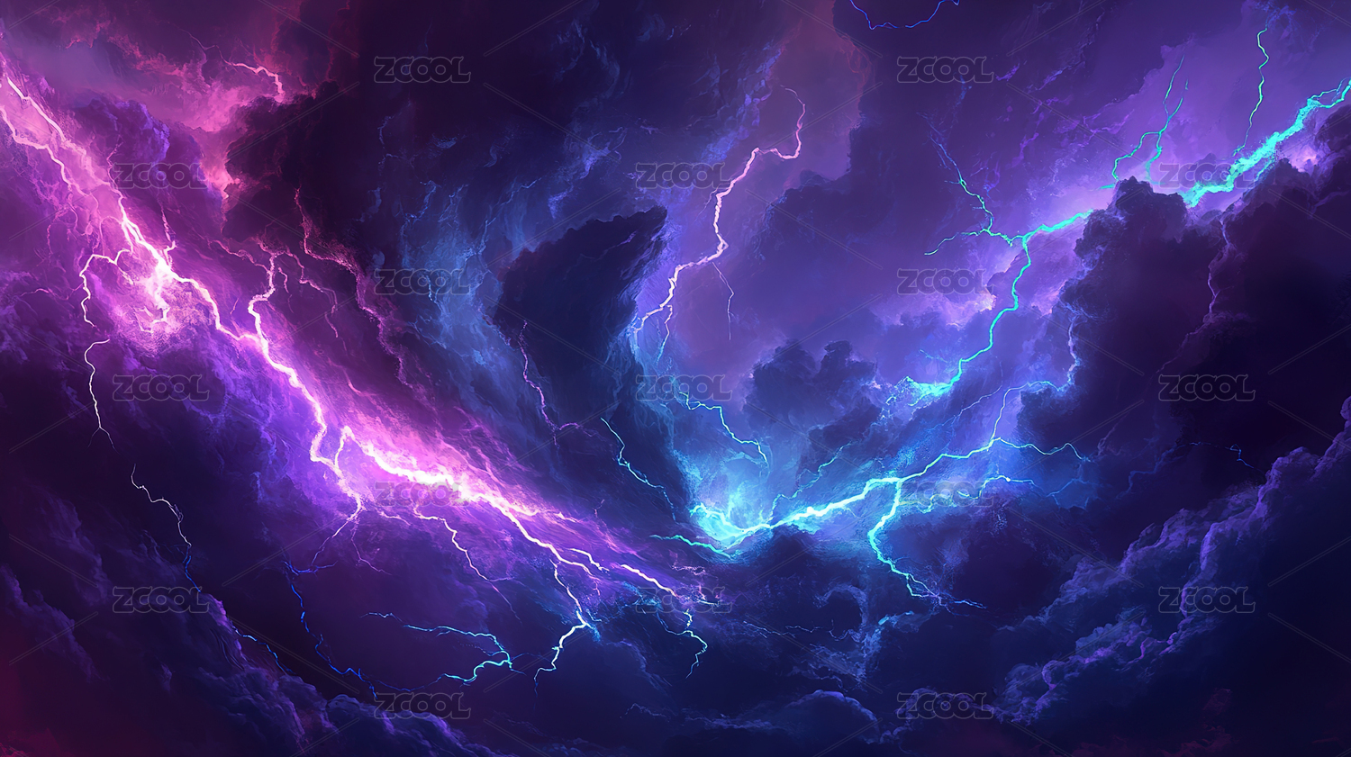 紫蓝闪电划破夜空