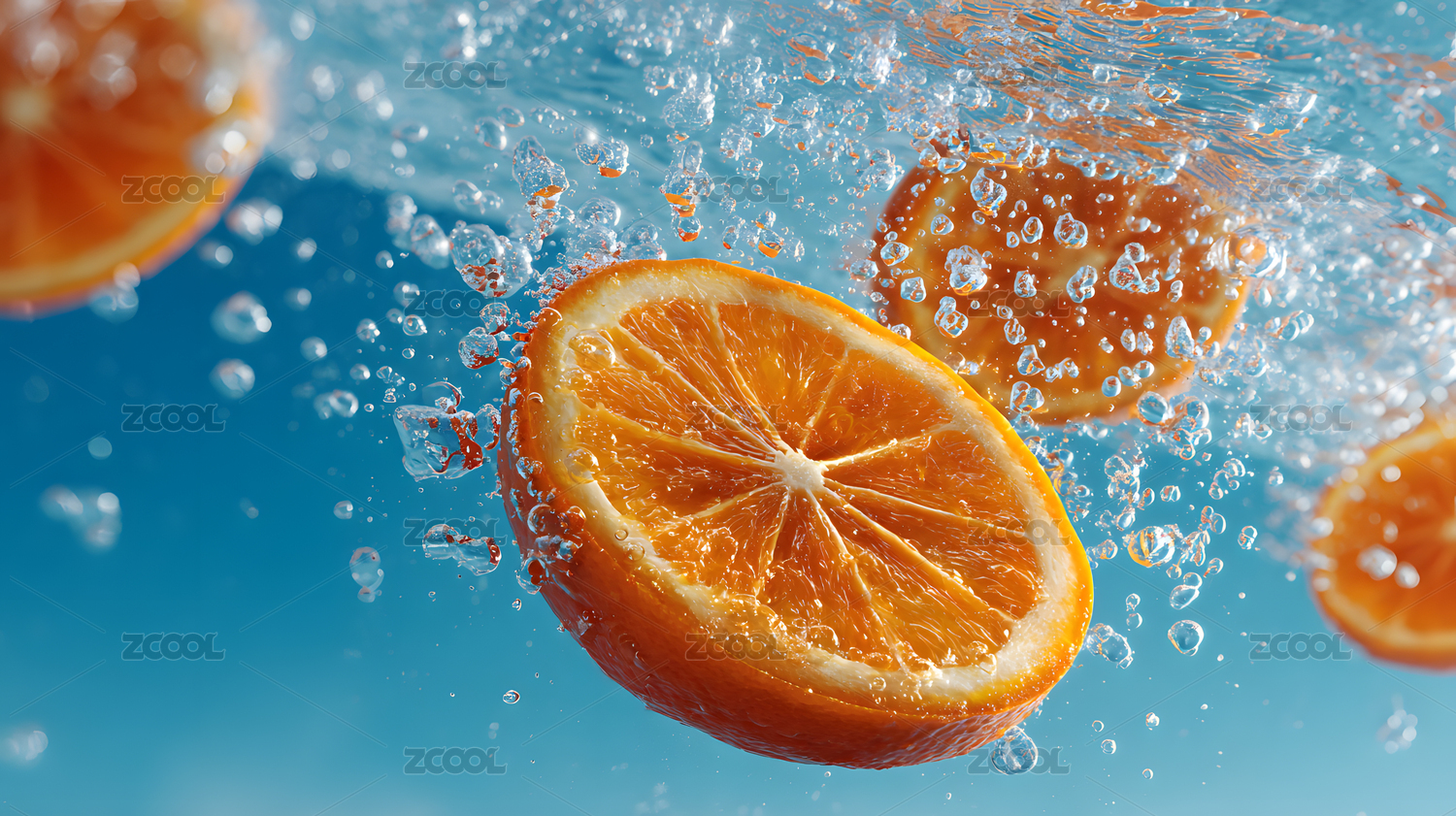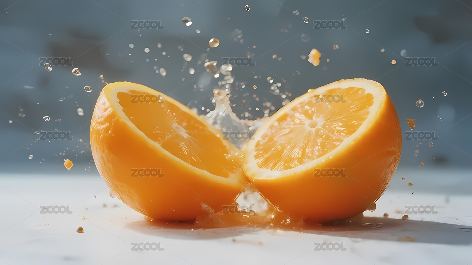 写实立体溅起水花的新鲜柠檬柚子汁水四溢
