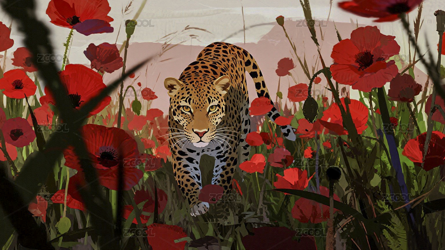 国潮,背景,复古,工笔,写意,花,植物,动物,彩色,手绘