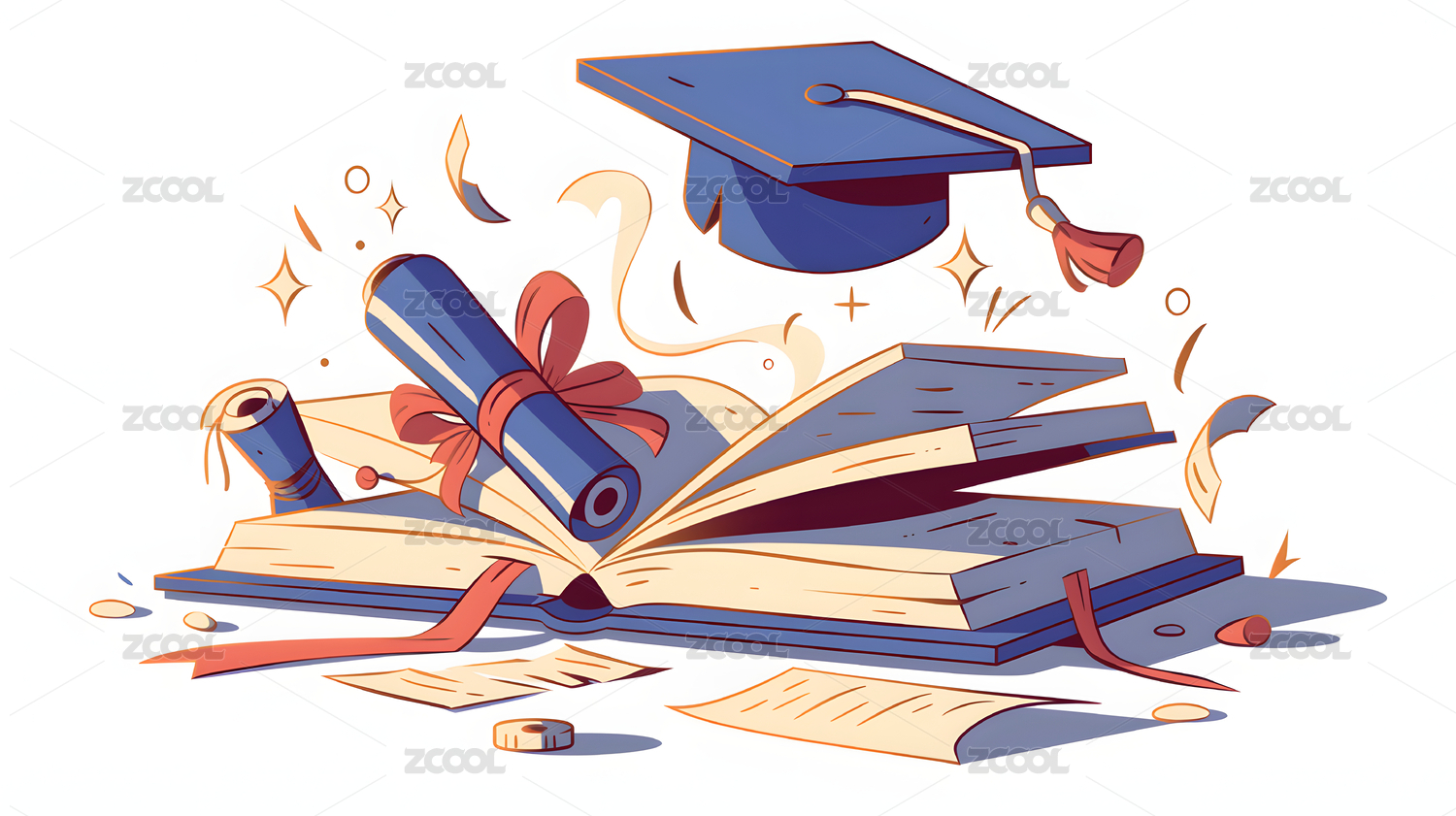 书籍学士帽学习插画