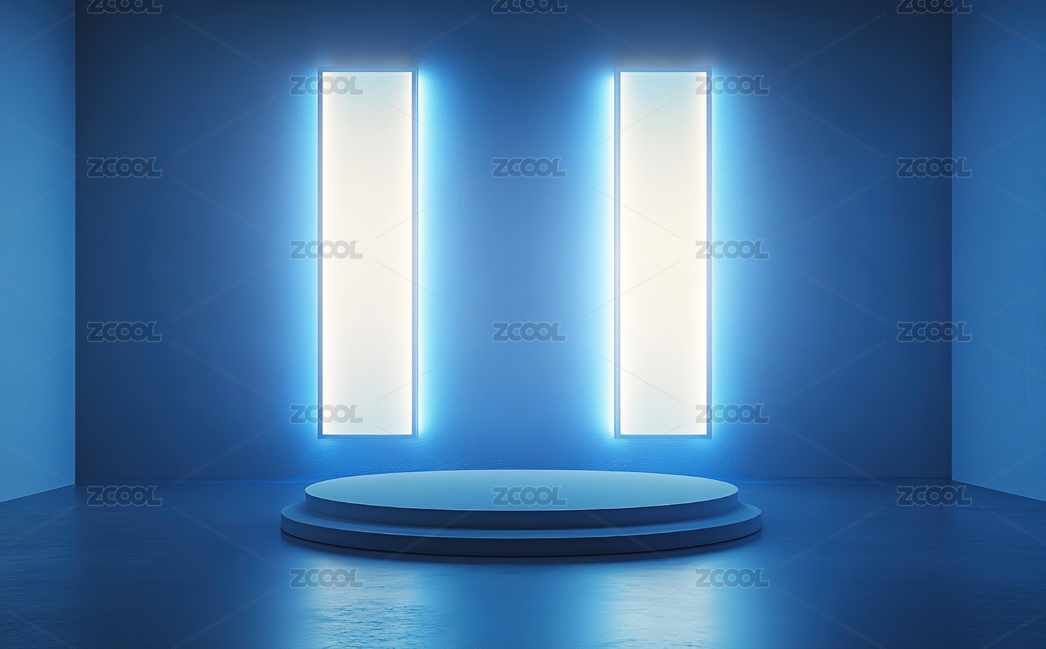 3D渲染科技风霓虹灯线条电商产品展台背景