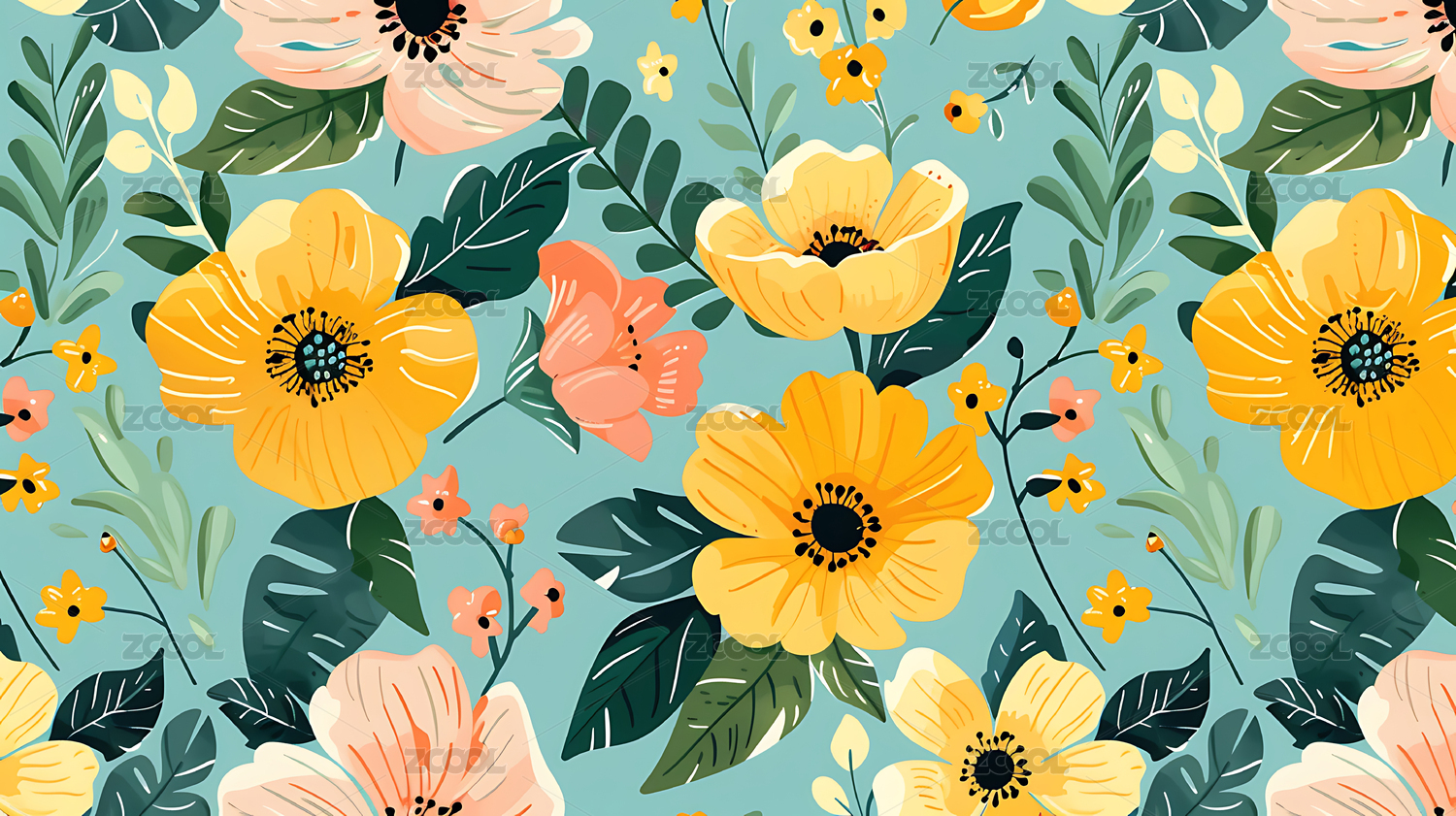 四方连续花草印花