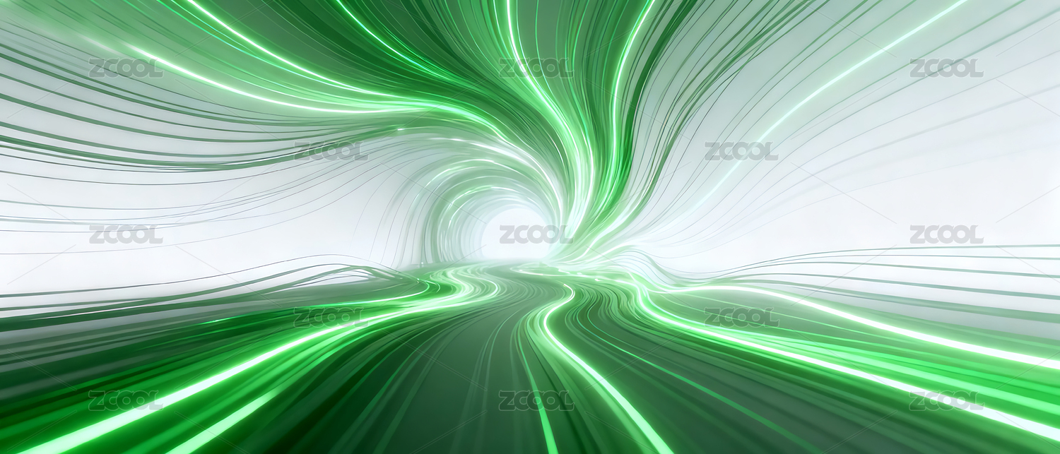 白绿色光速线隧道数据流场景