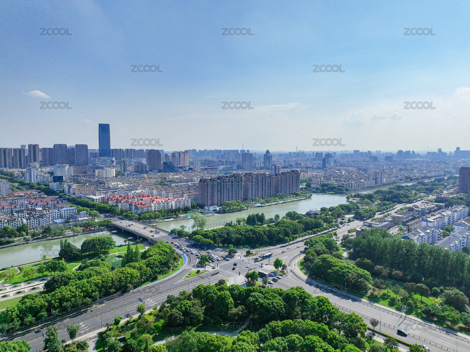 航拍昆山城市建筑风光大景