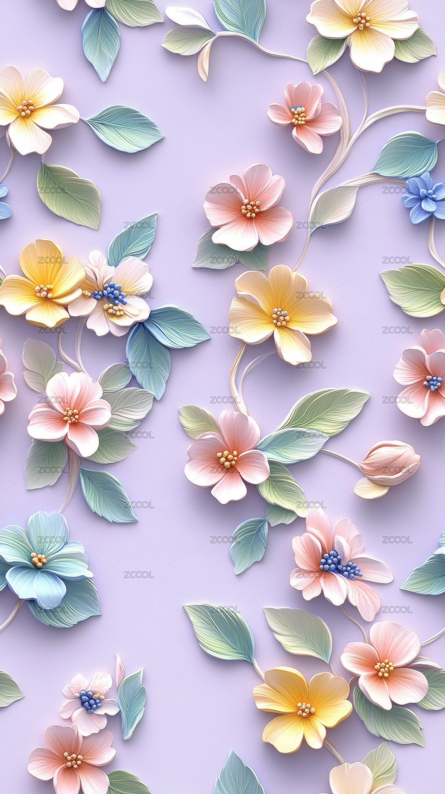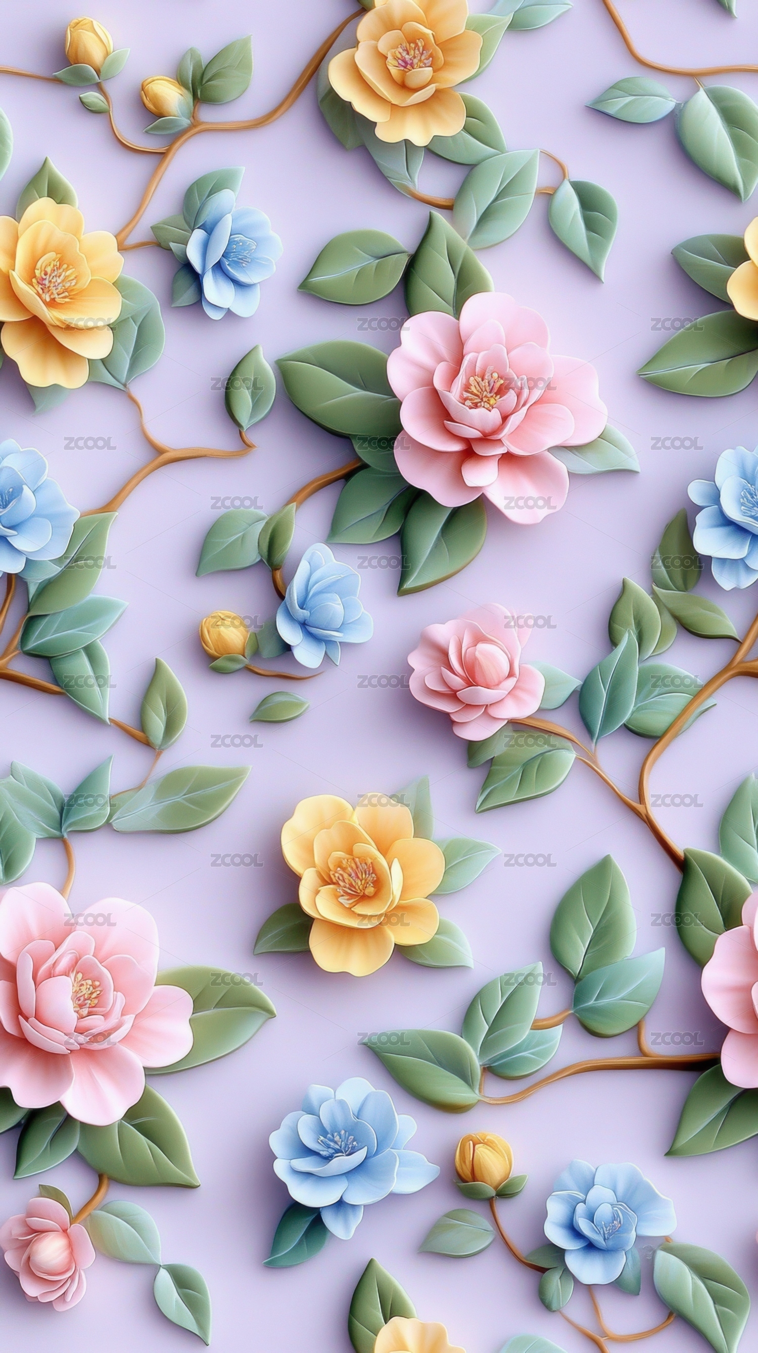 立体花卉图案壁纸设计