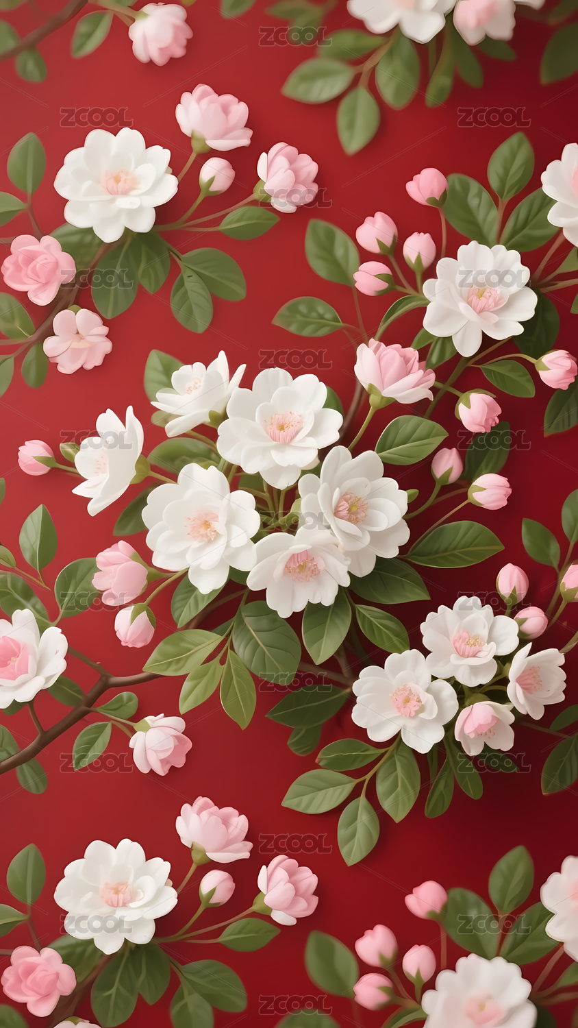 花朵与绿叶的生机图案