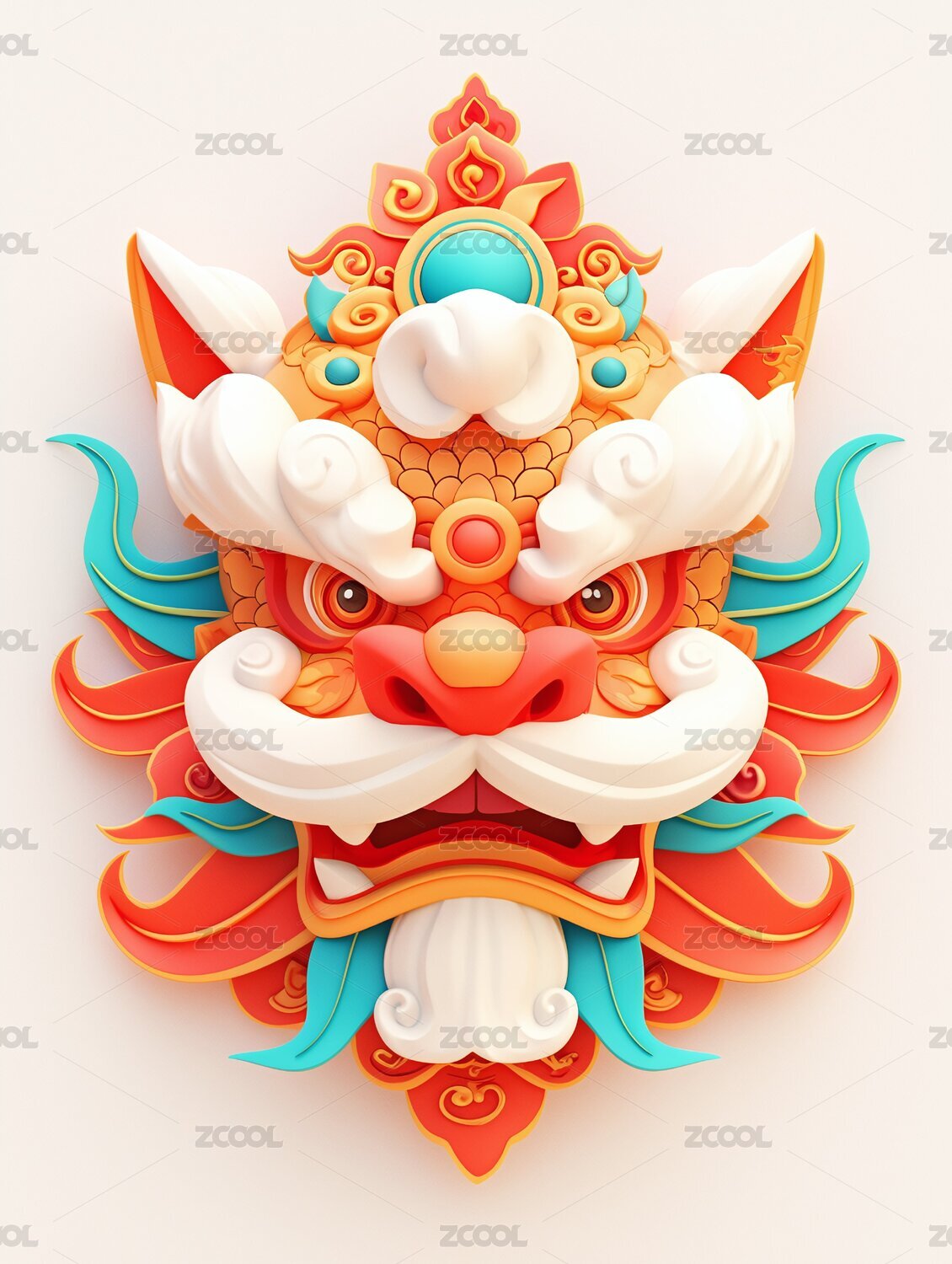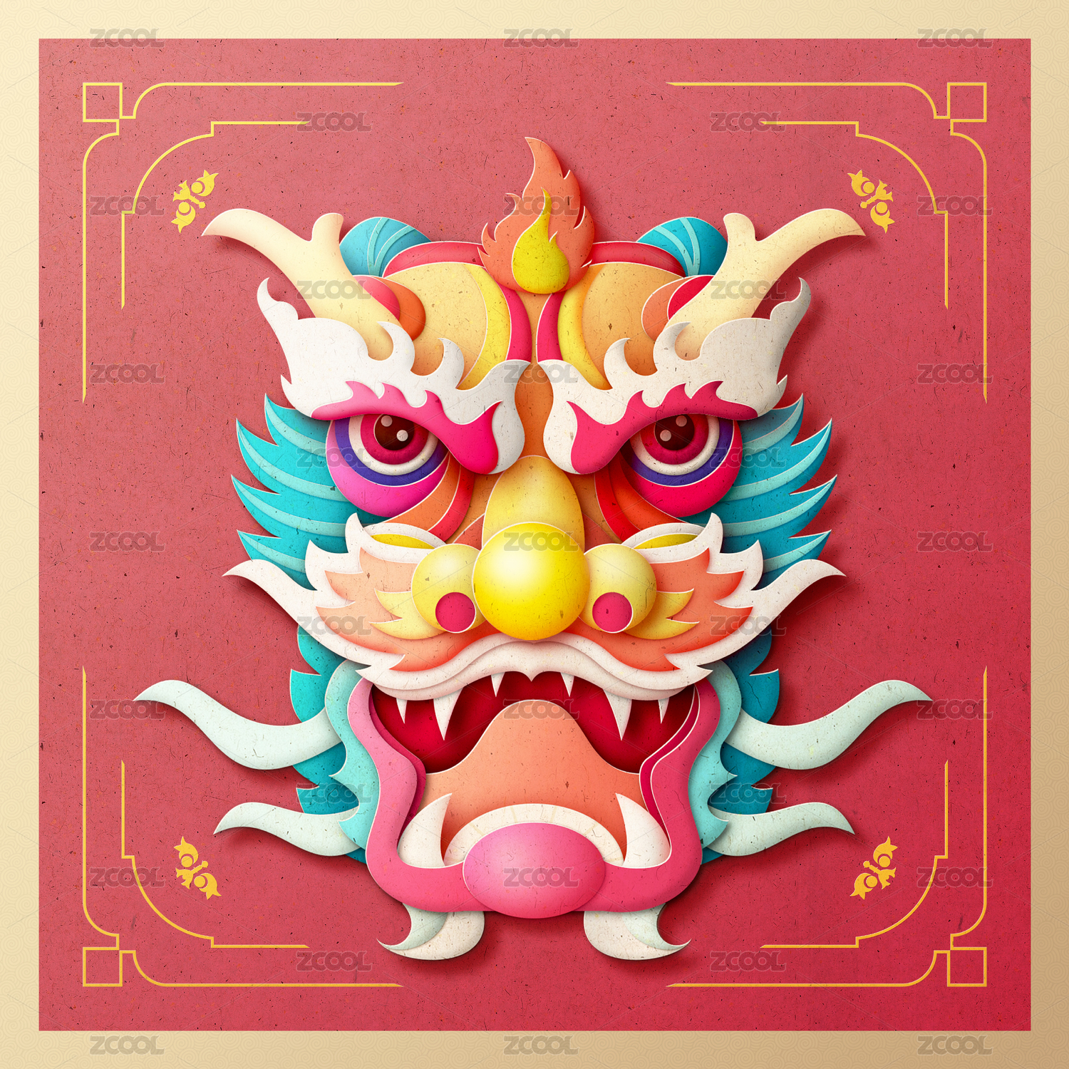 HEZODIAC2021,剪纸风,新年,图案,对称,吉祥,贴纸,元宝,醒狮,舞狮