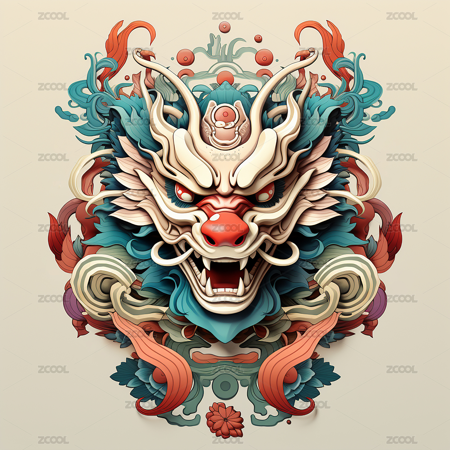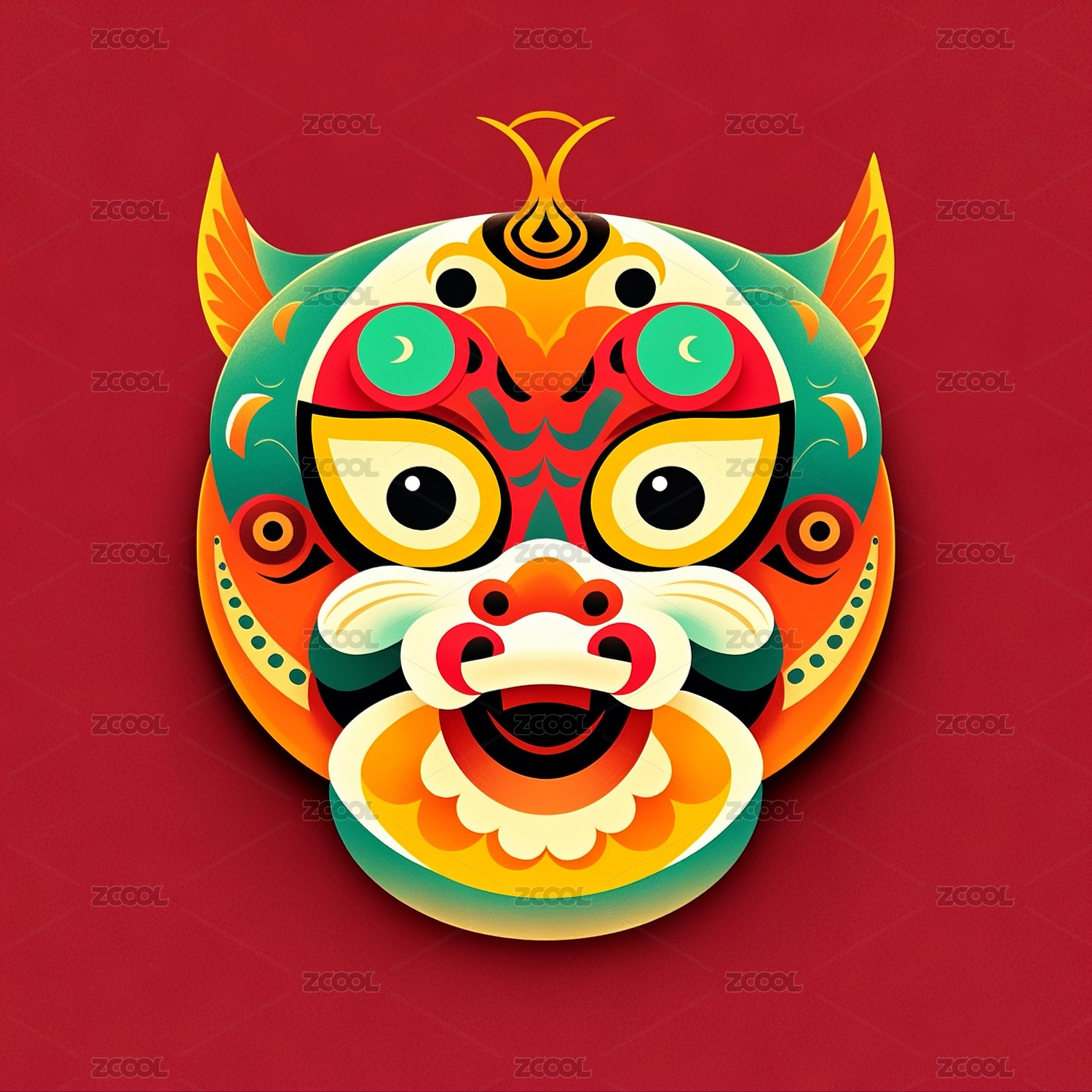 扁平化新年国潮风格醒狮喜庆氛围插画
