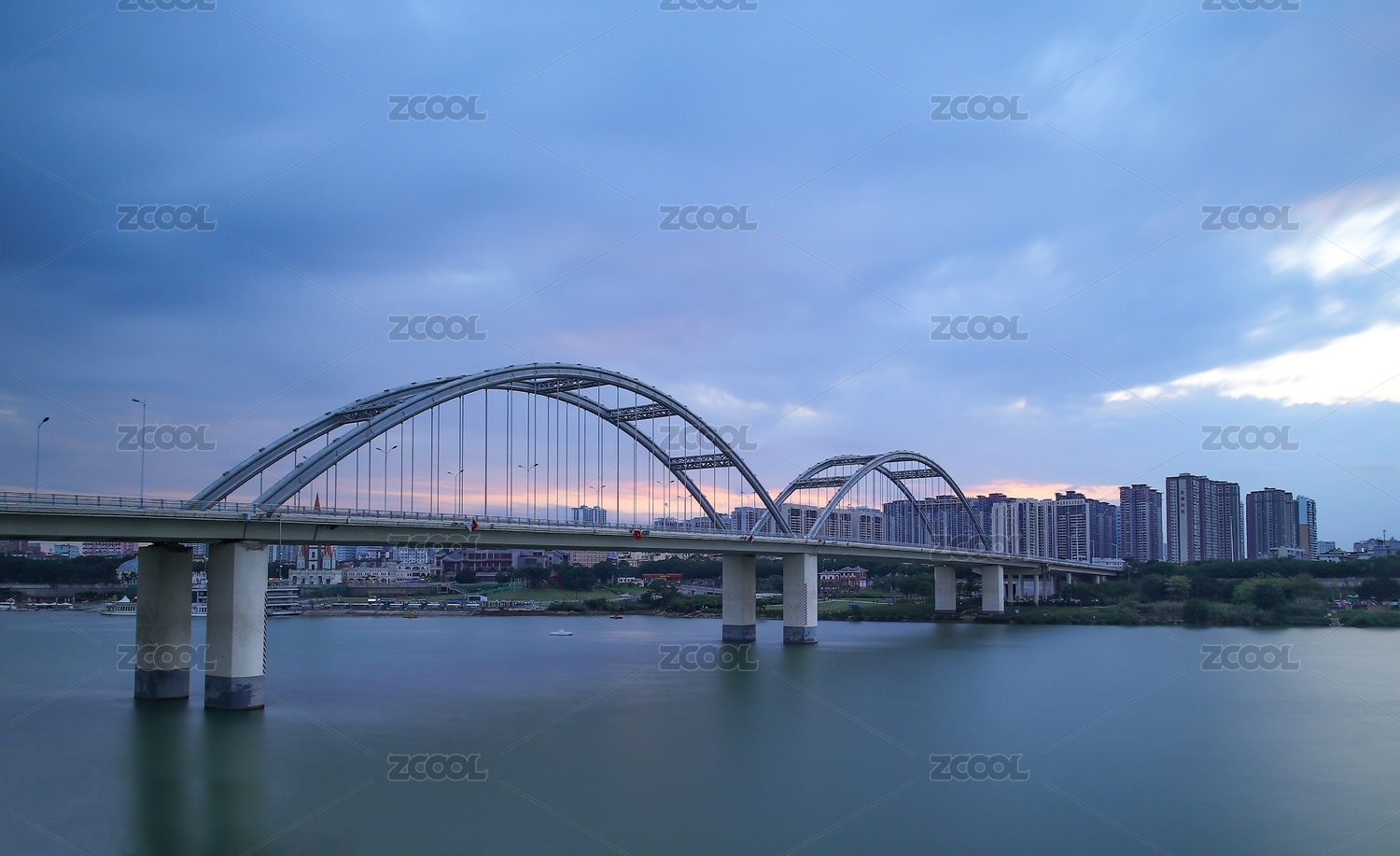 中国广西南宁邕江白沙大桥风光