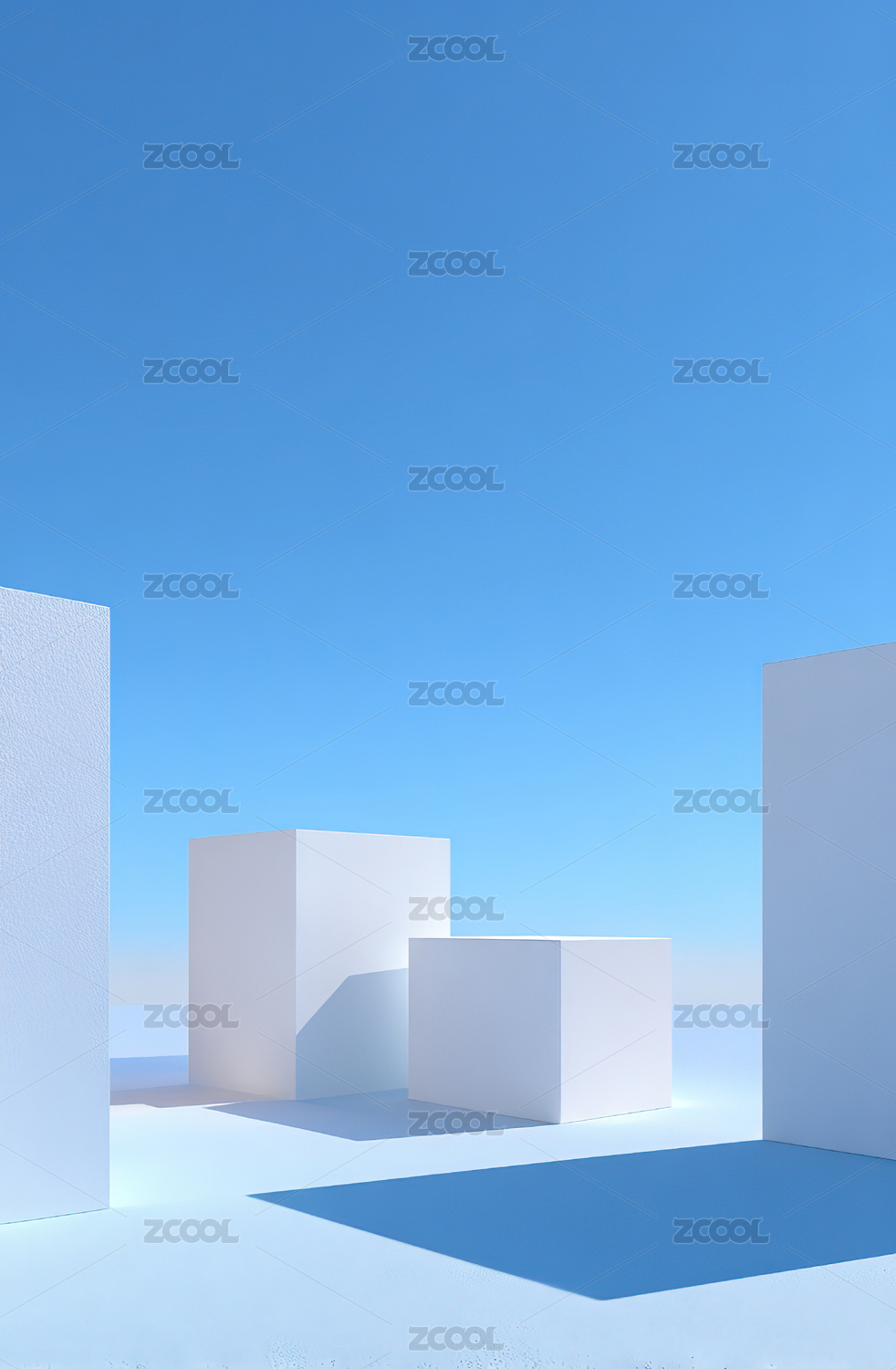 DXCZ202401,蓝色,立方体,产品展台,光影,天空,蓝天,背景,简单,留白
