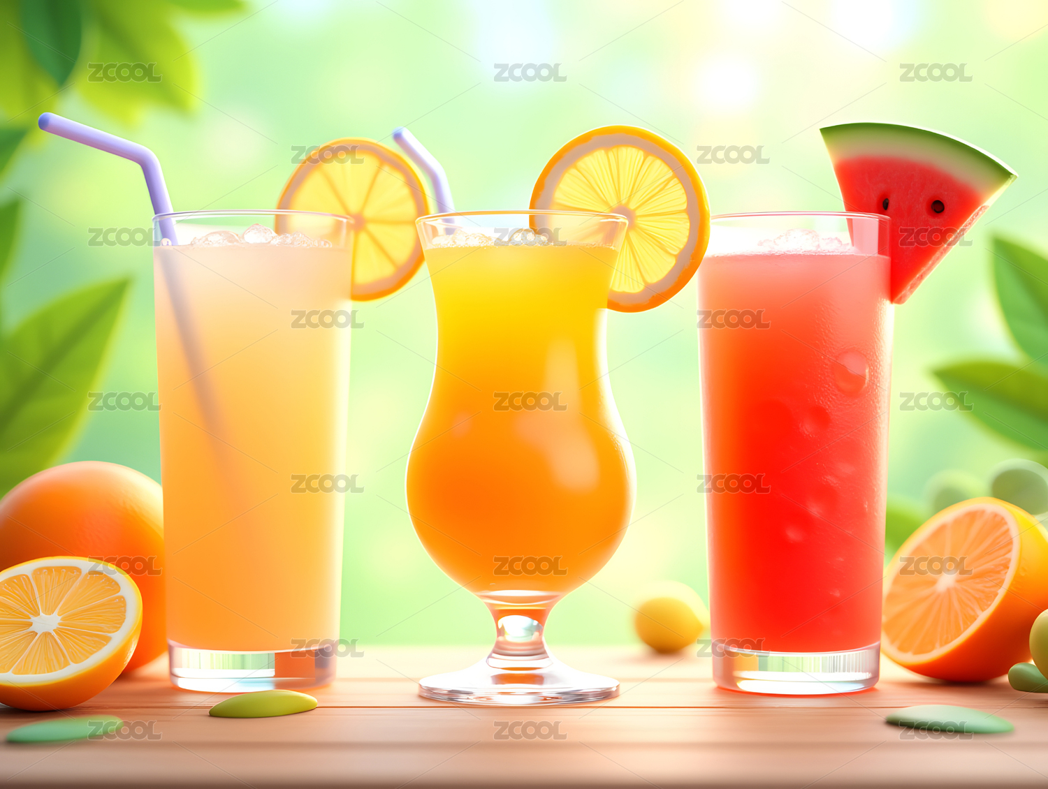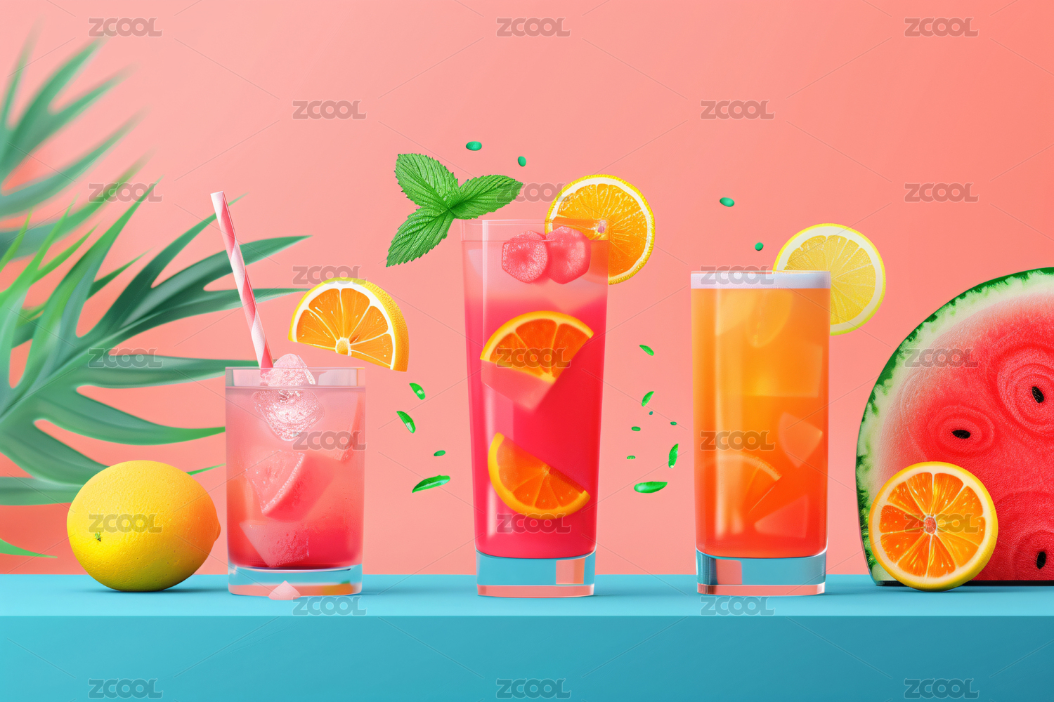 夏季水果茶饮料食品健康夏至节气清凉插画