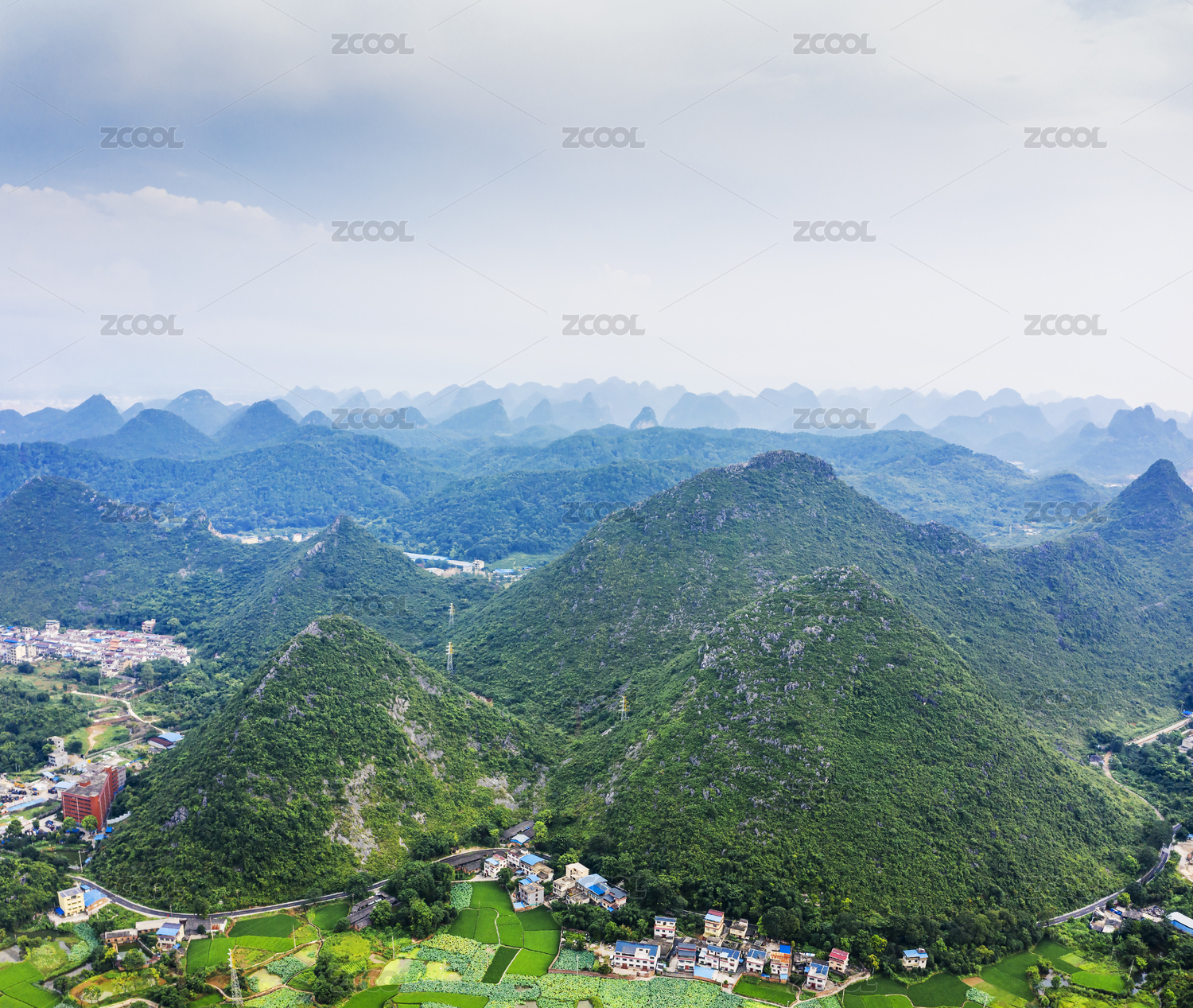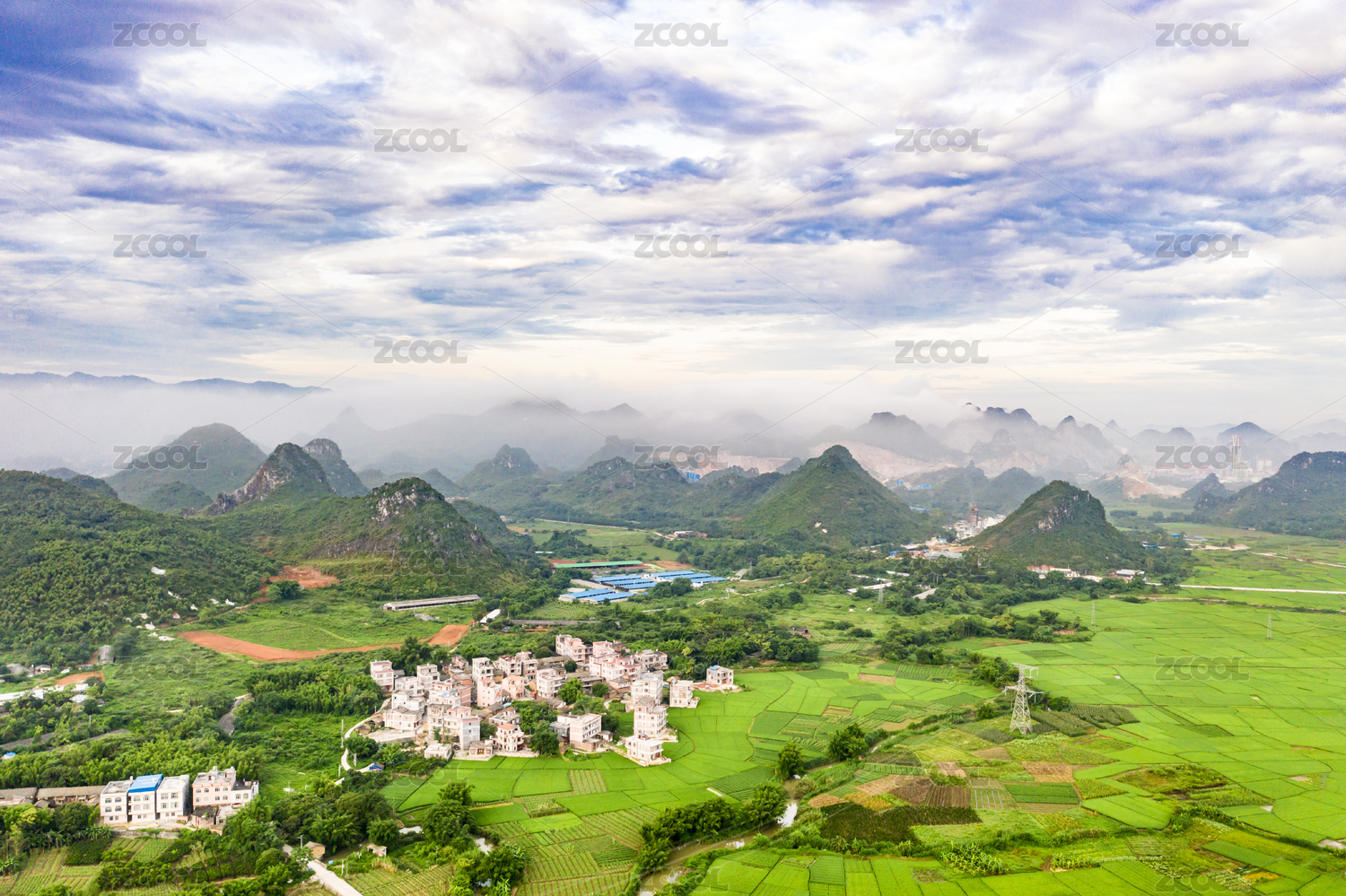 山峰与田野航拍-广西柳州柳城县古砦乡