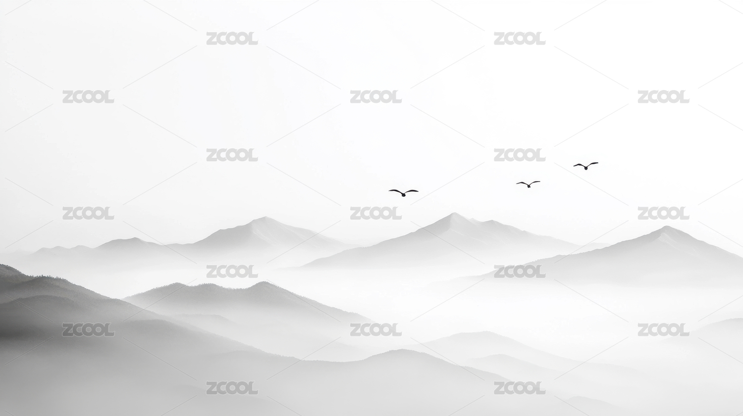 中国风淡雅水墨山水画 意境水墨山水画背景