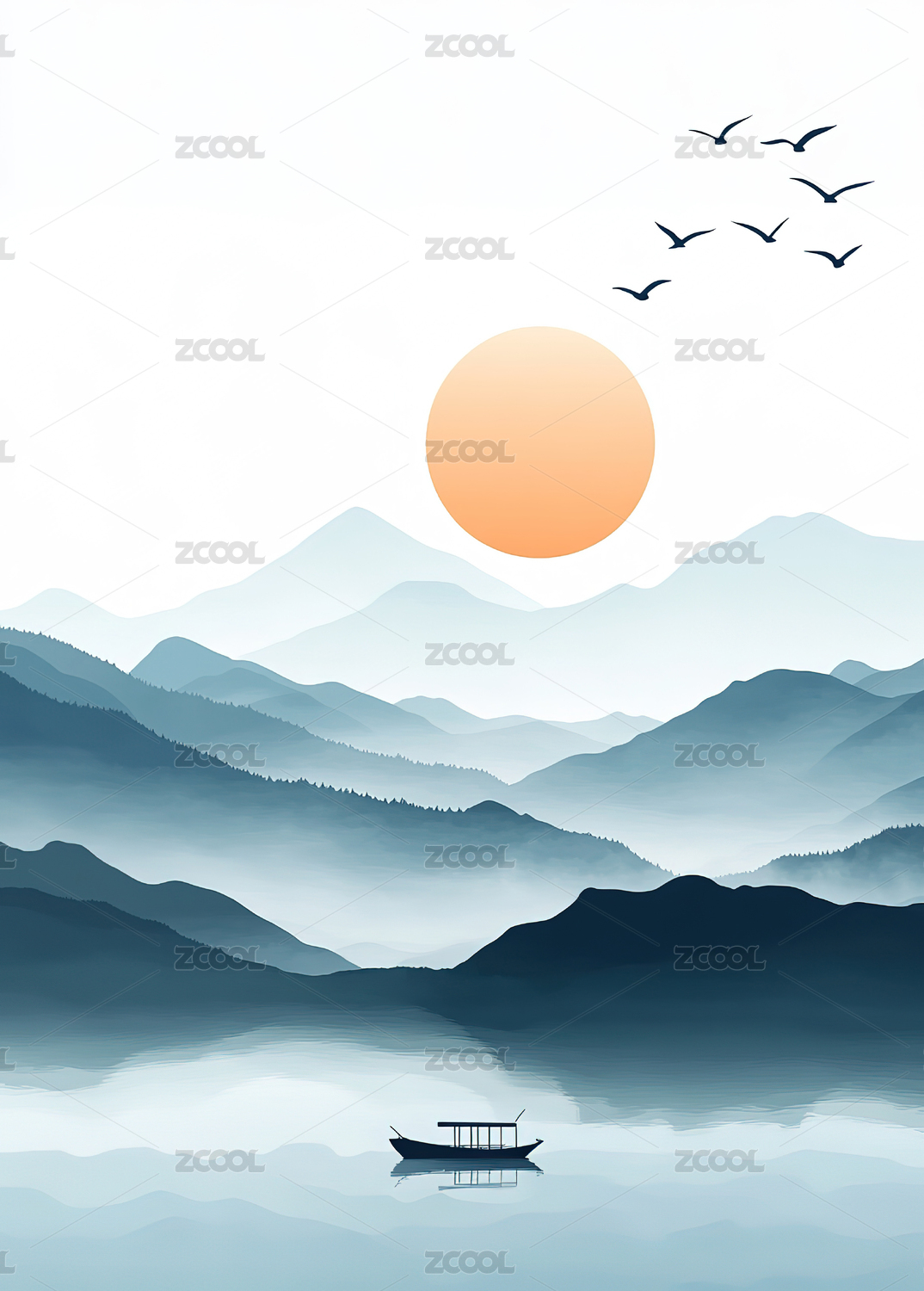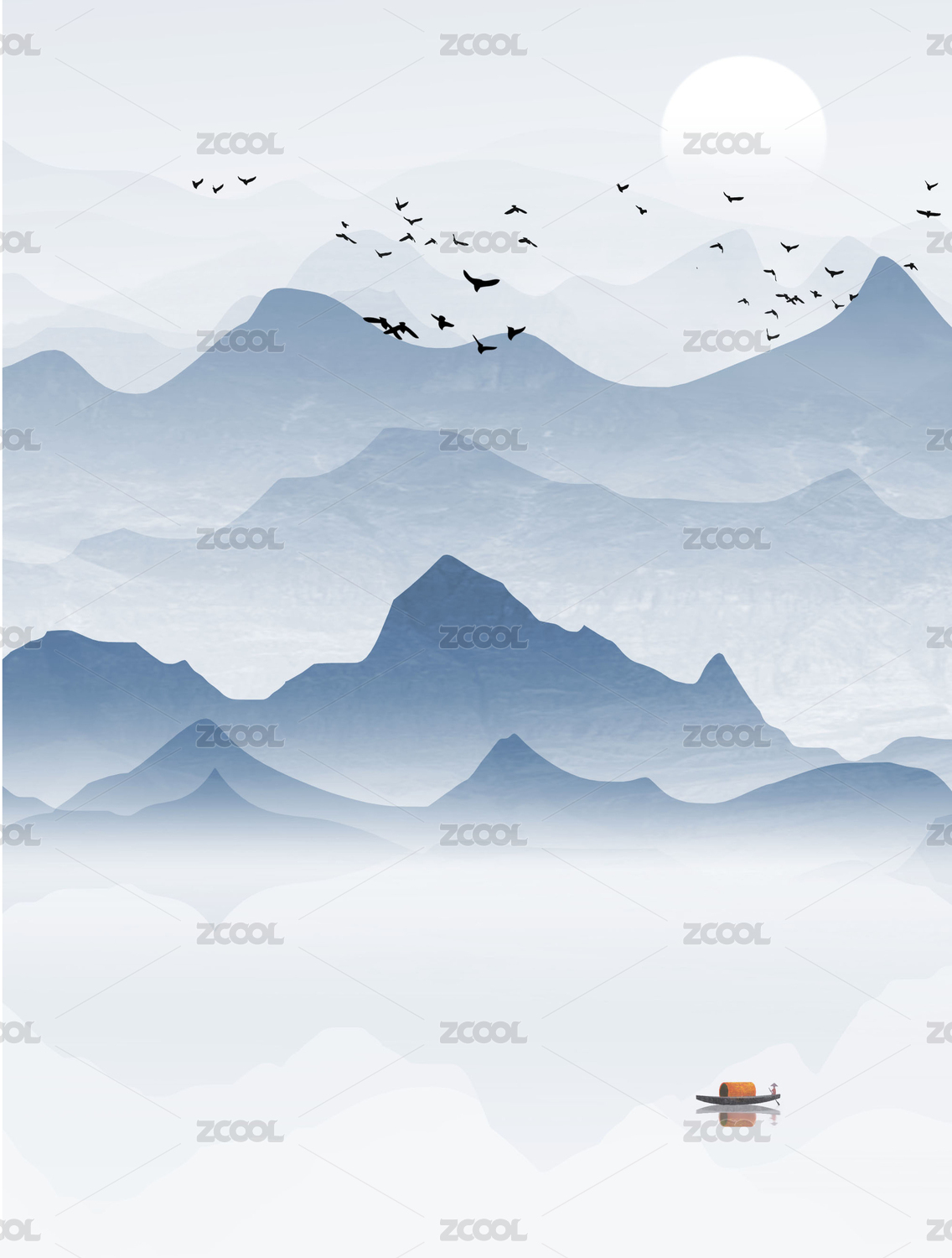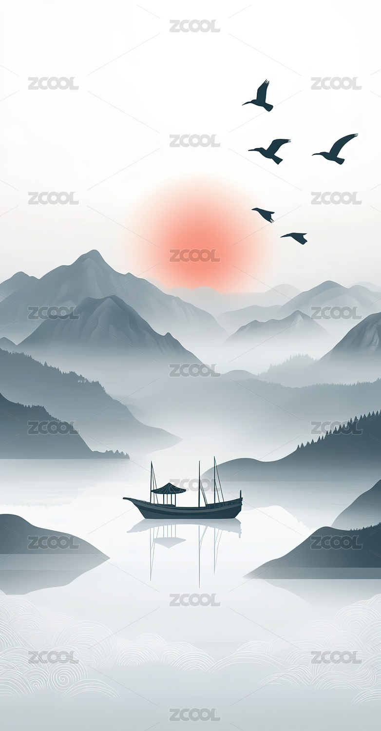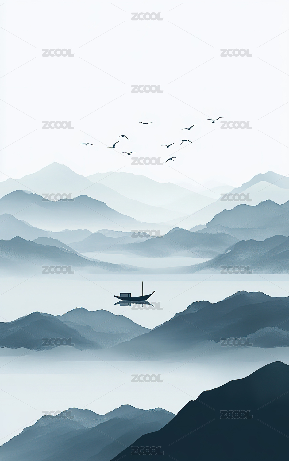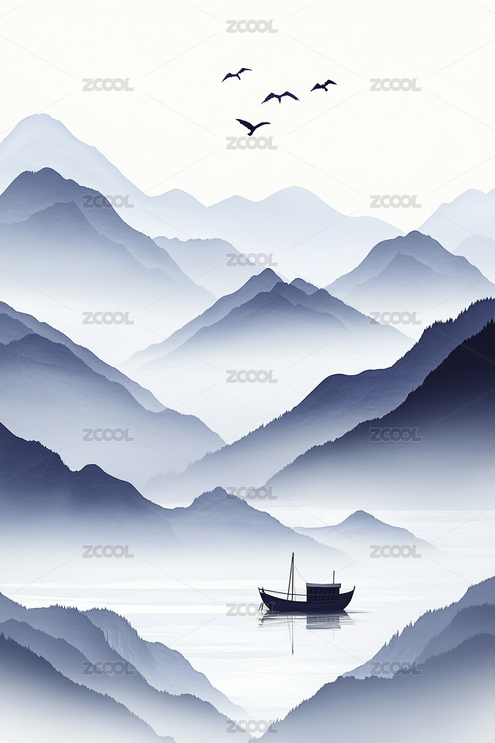 山水,水墨,山水画,高山,群山,雾霭,剪影,意境,雾,古风
