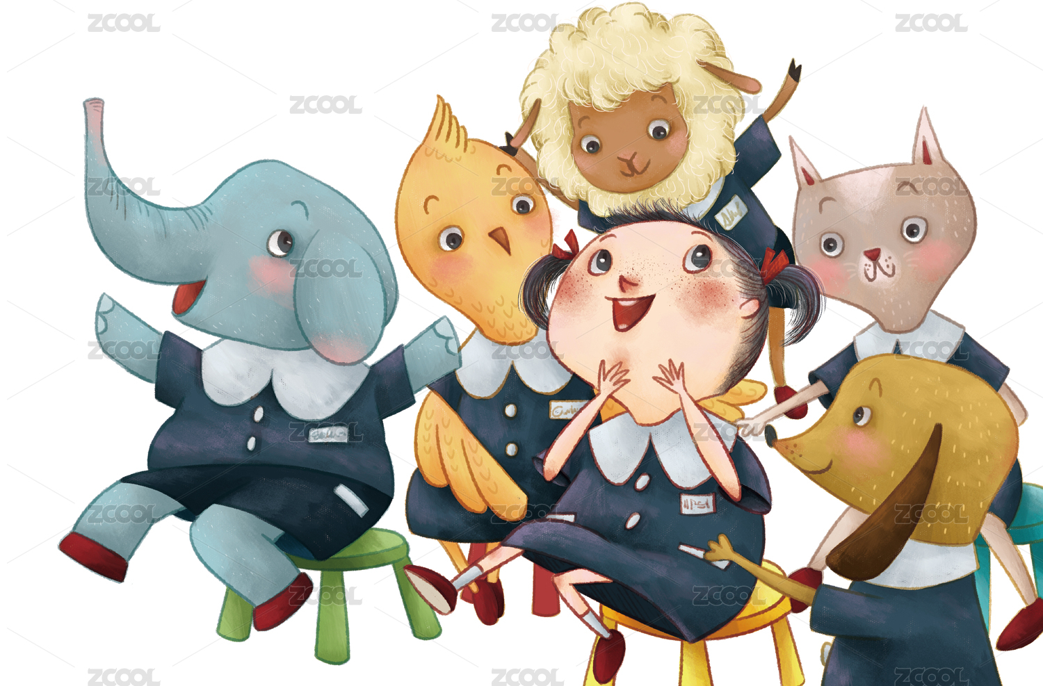 插图,郊外,滑梯,动物,熊,猴,猪,狐狸,兔子,玩