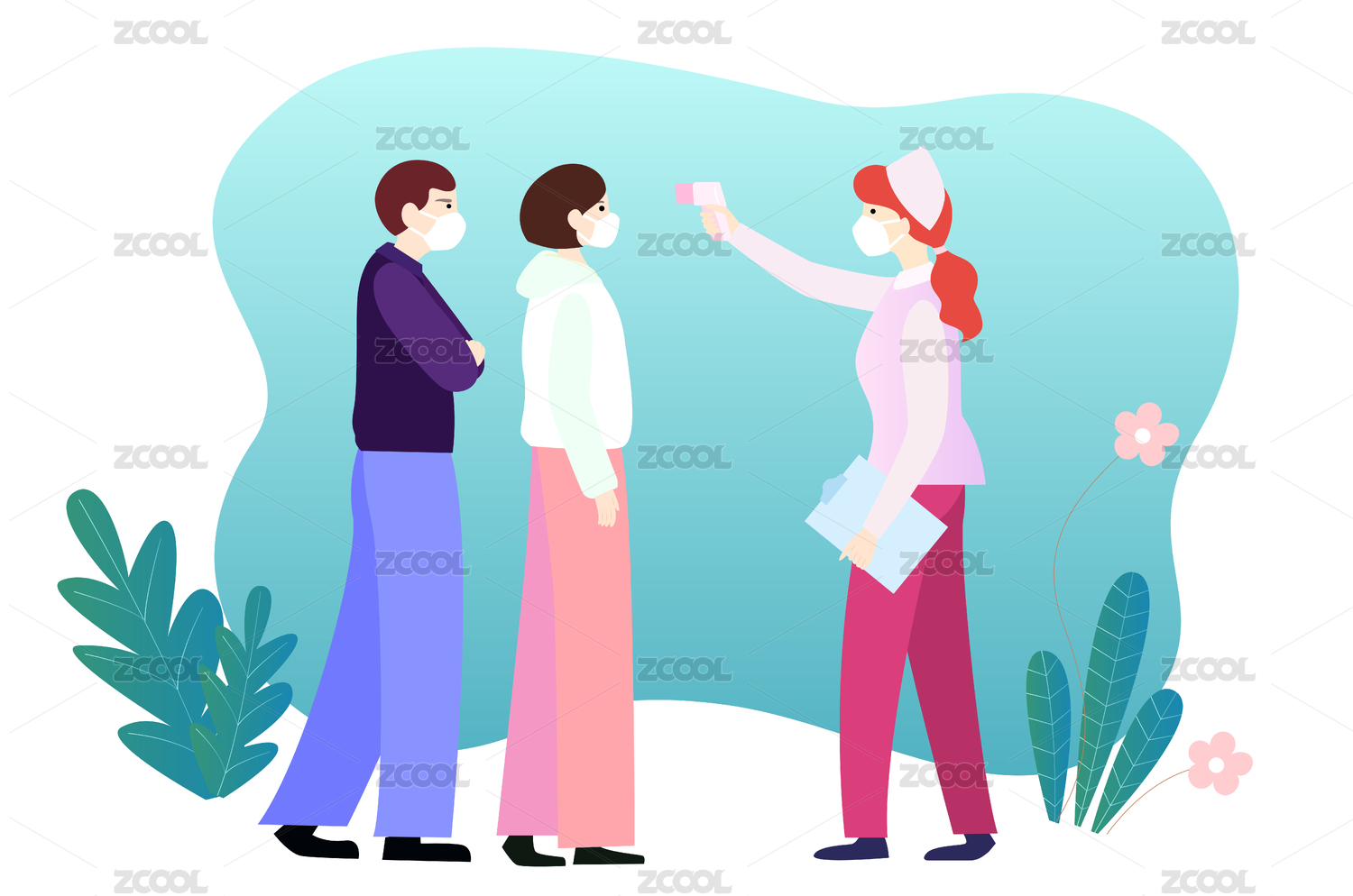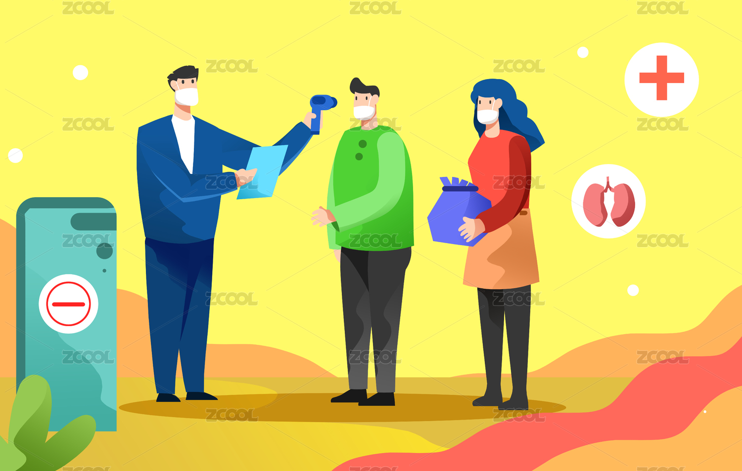 戴口罩人员检测体温插画