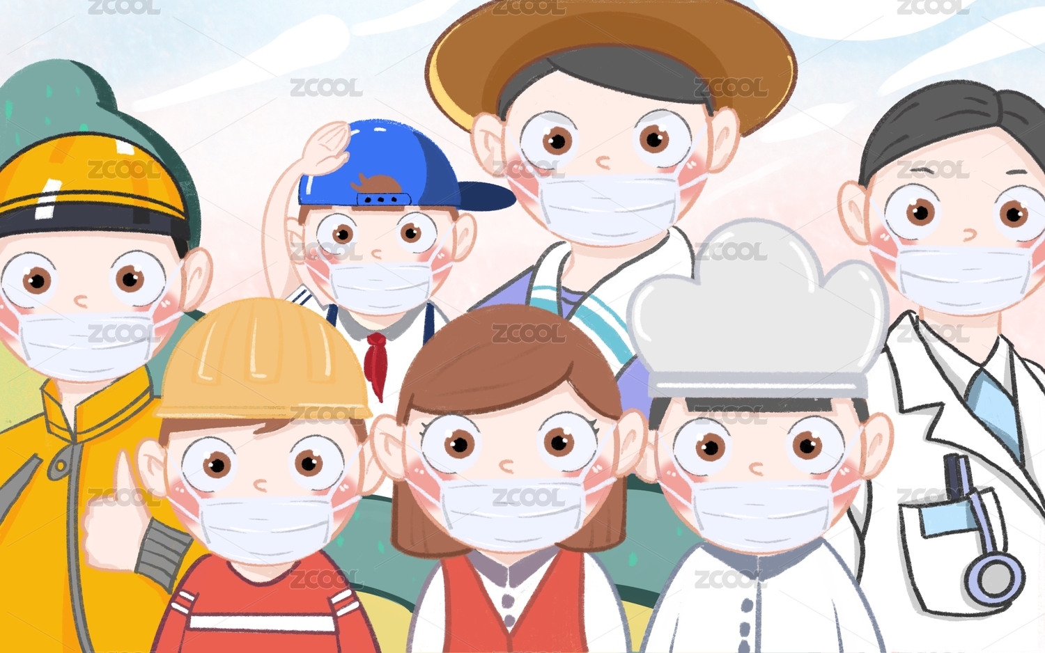 戴口罩的职业人群
