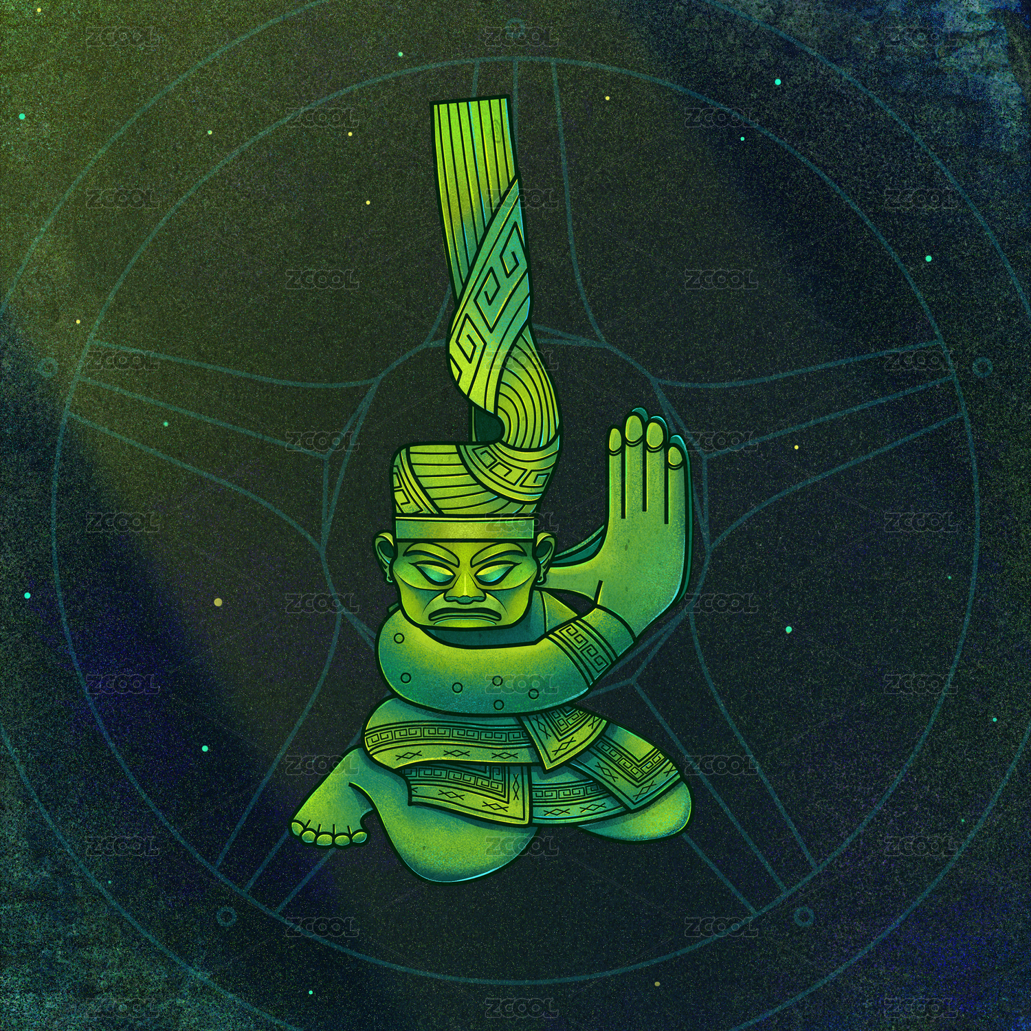三星堆,元素,插画,文物,古董,青铜,博物馆,文明,人像,雕刻