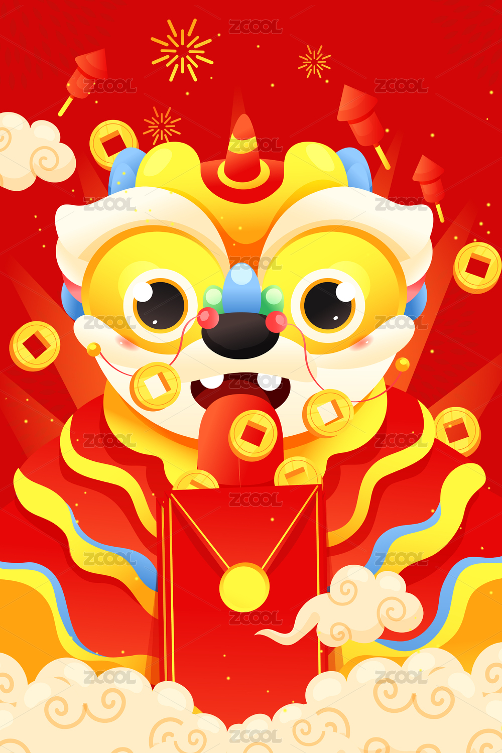 新年灯笼舞狮元素,可以自行加文字和祝福语
