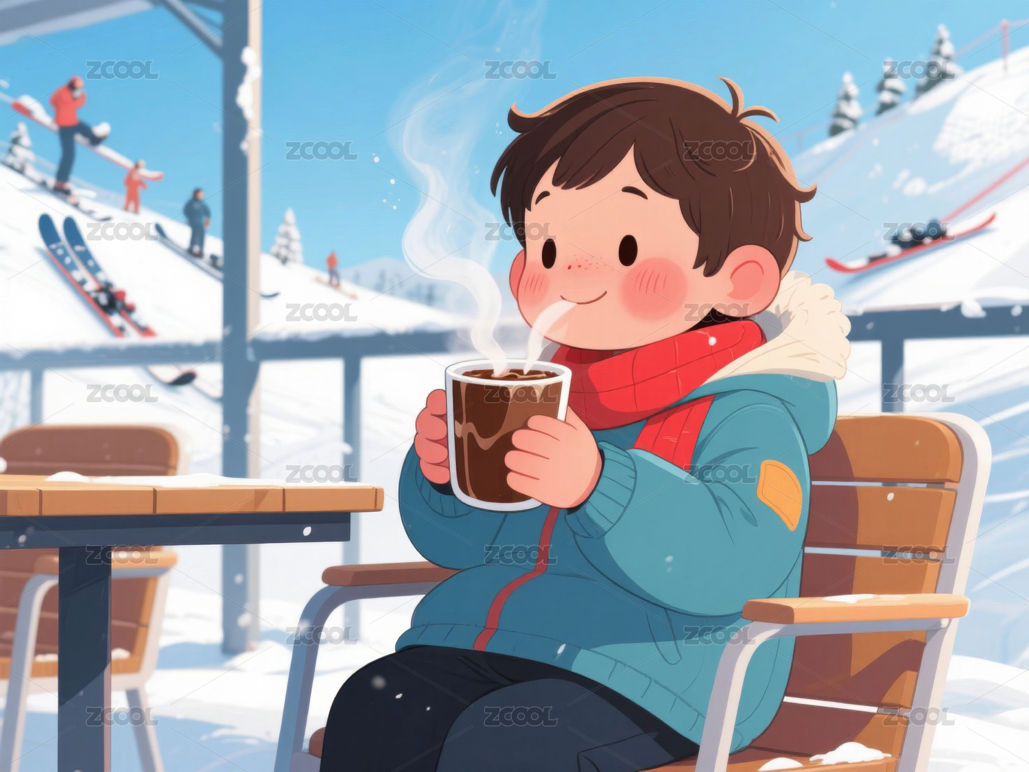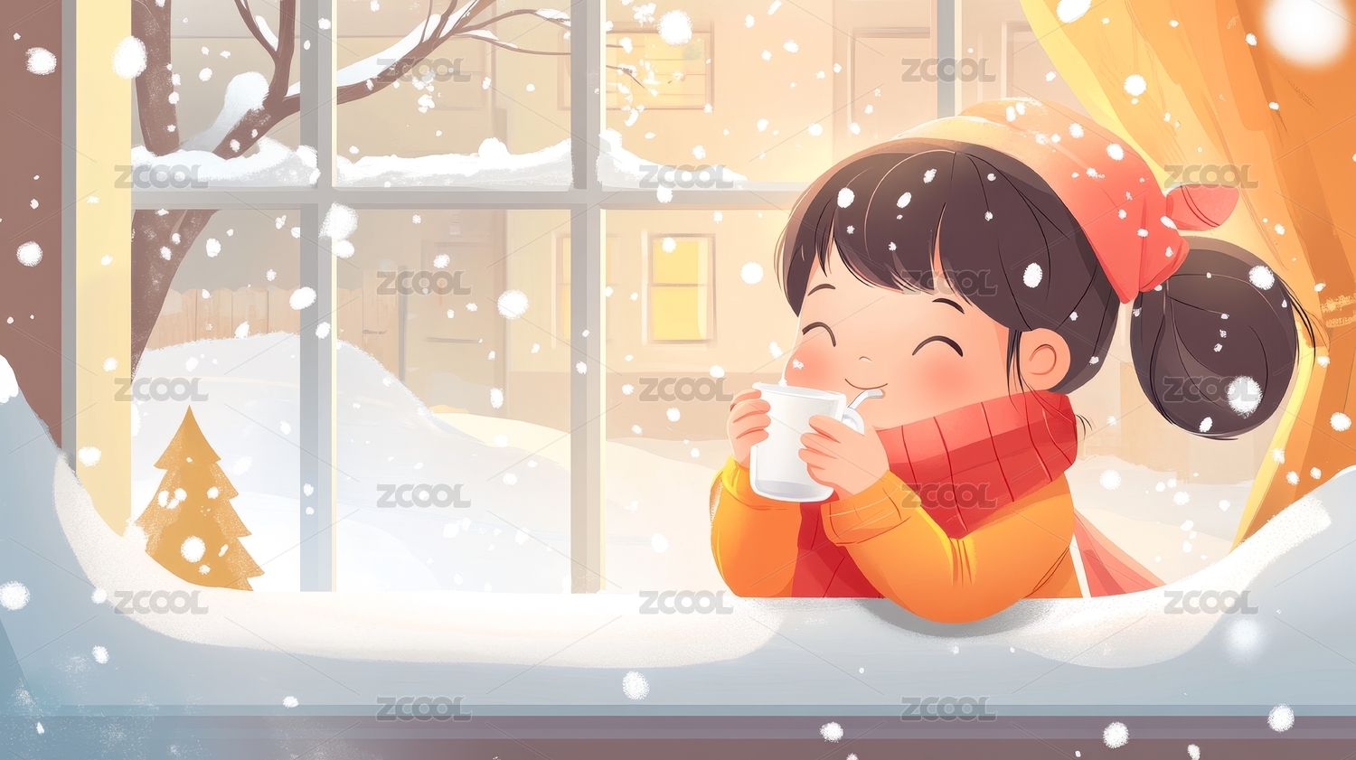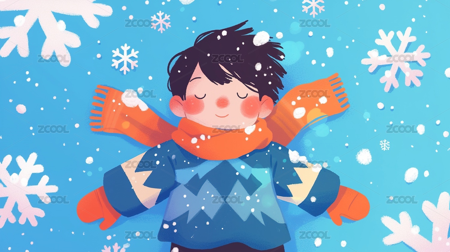 新年春节下雪大雪雪景福娃年画水墨风儿插