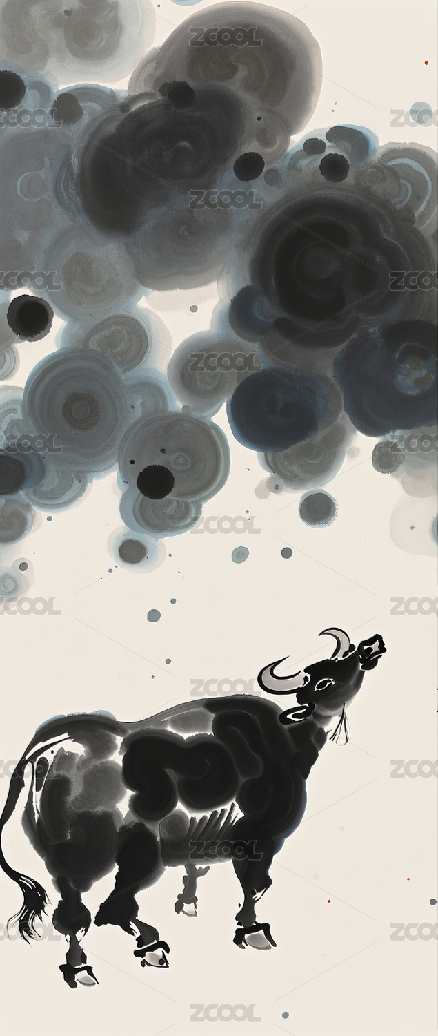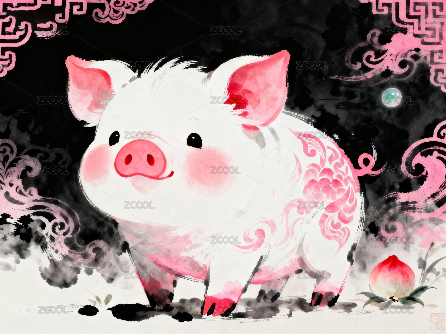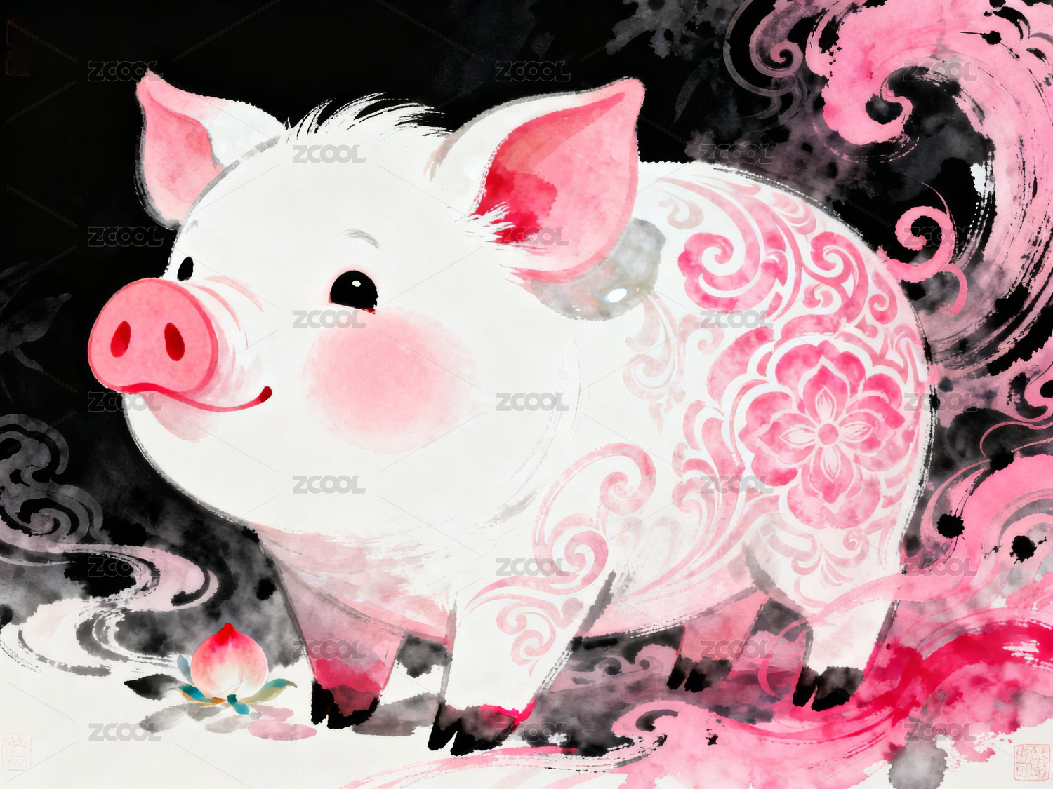 AI绘画,国画,水墨画,大写意,墨水,十二生肖,猪
