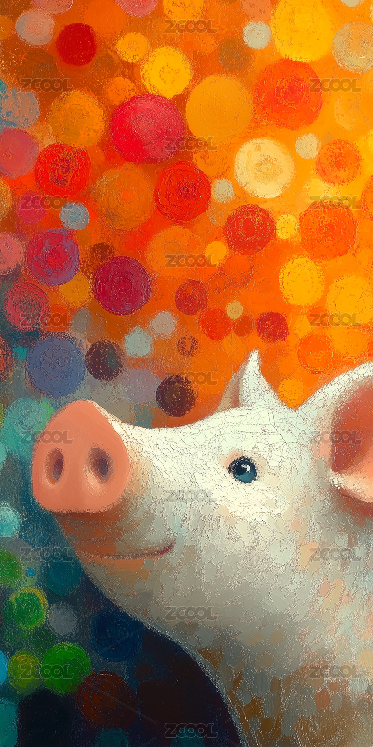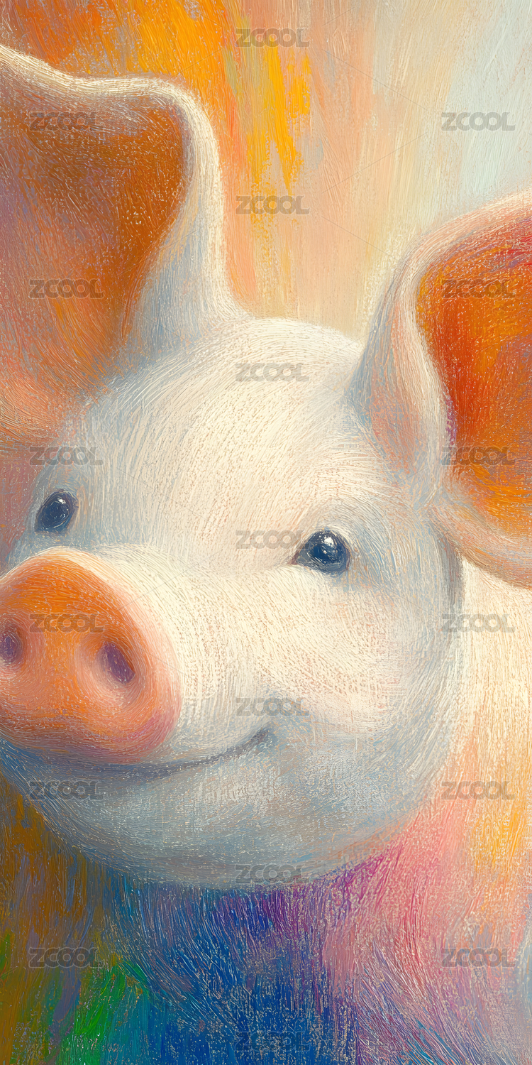 十二生肖可爱小胖猪仰天长啸岩彩画