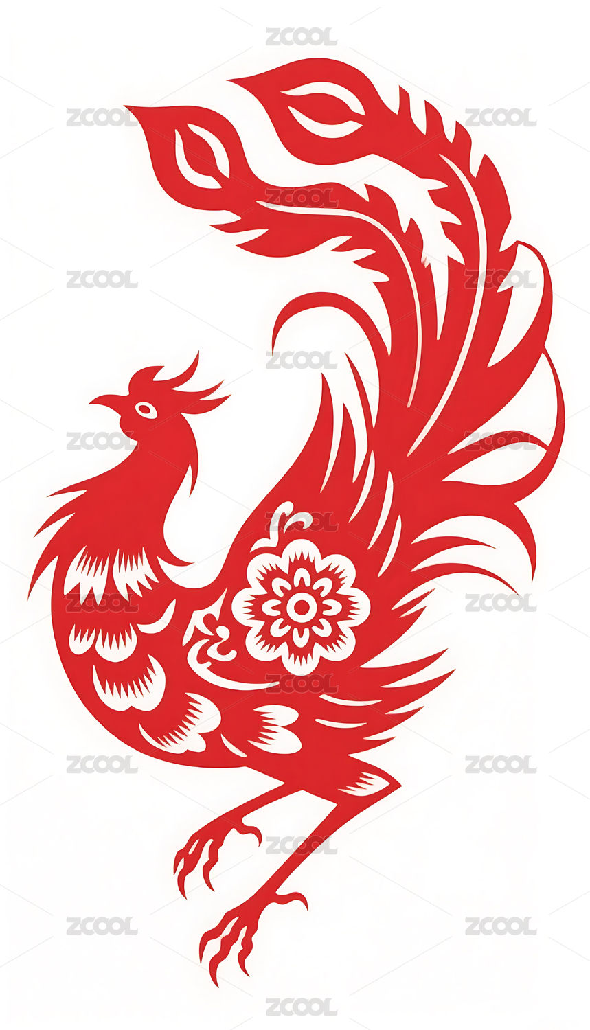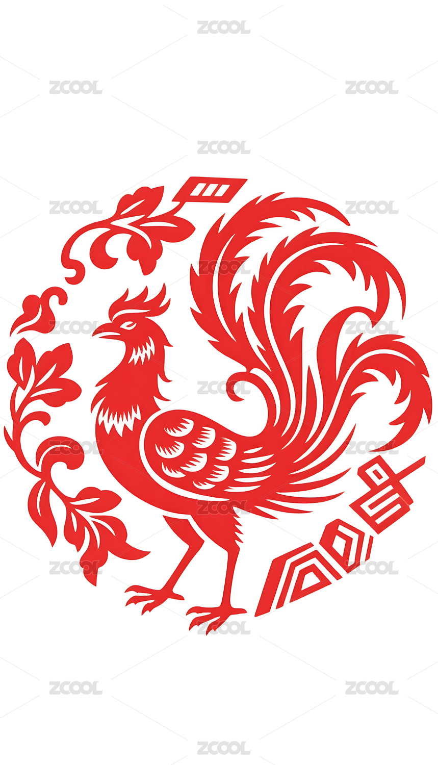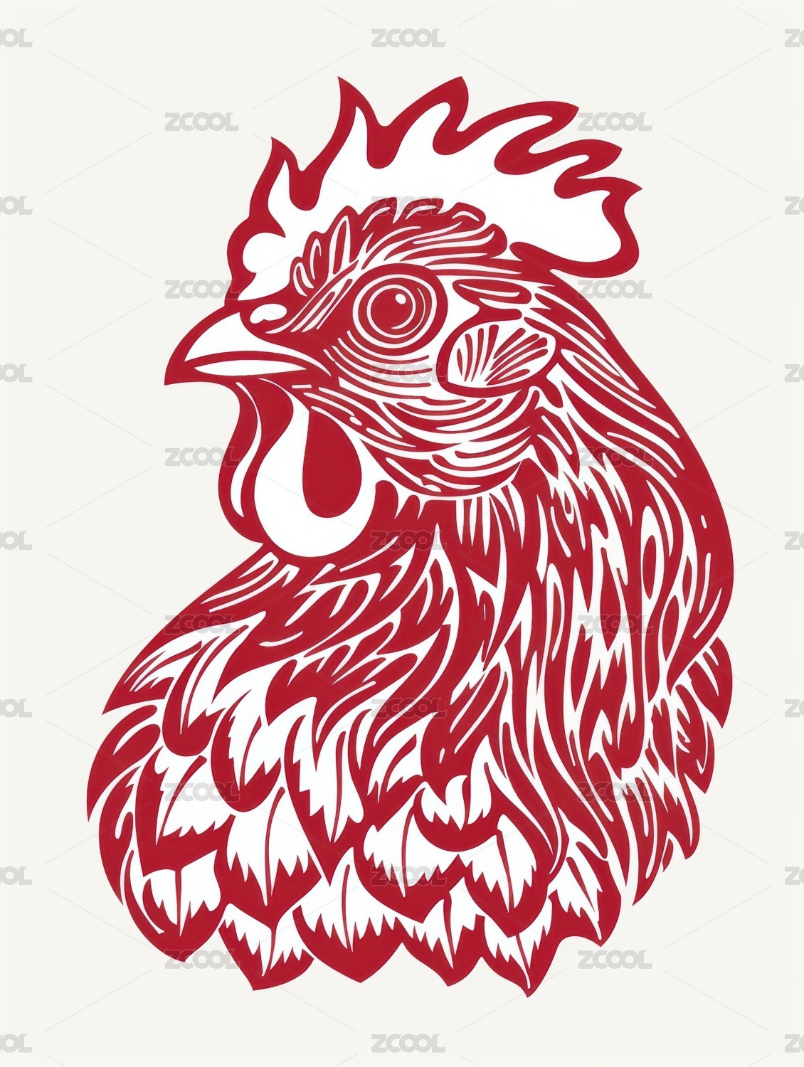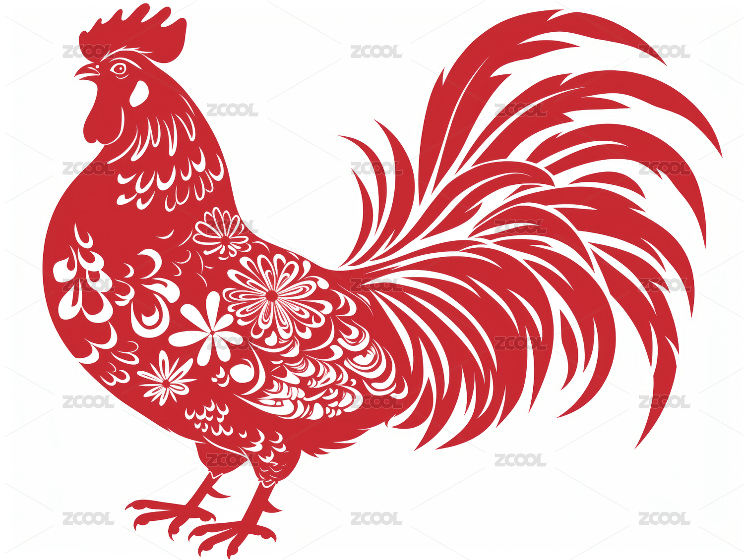 鸡,剪纸,白色,红色,传统,文化,生肖