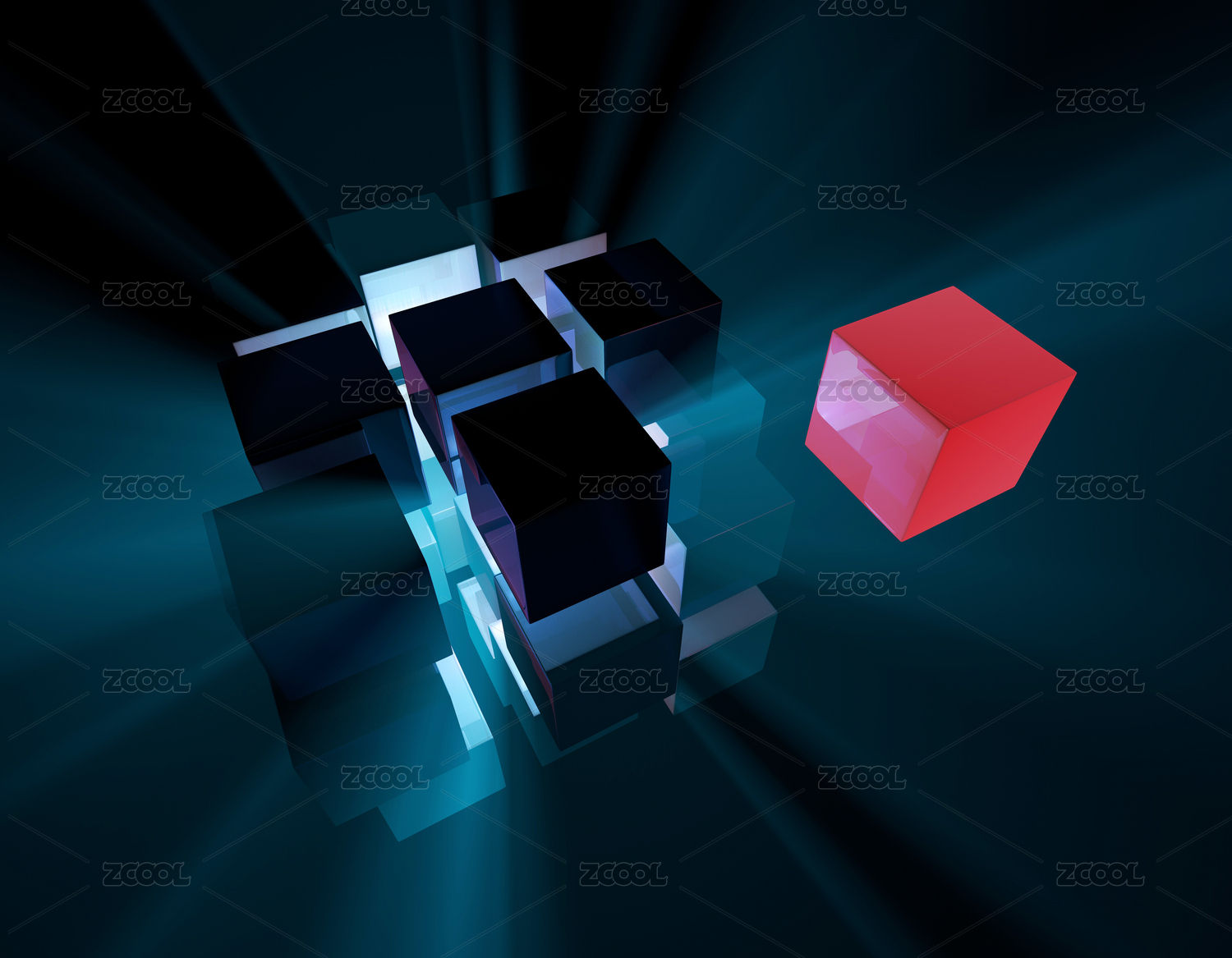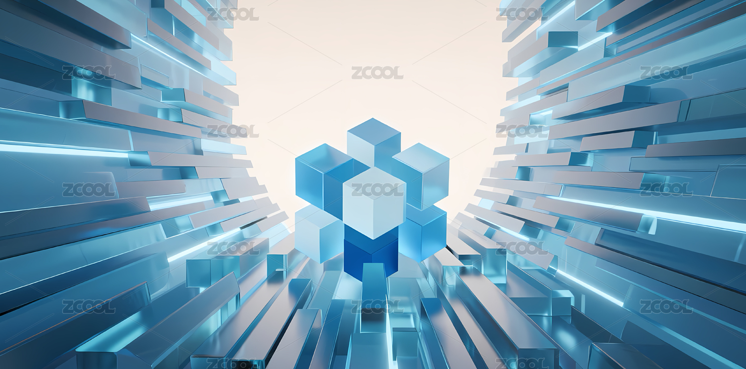 科幻彩色赛博荧光色魔方CPU存储3D插画