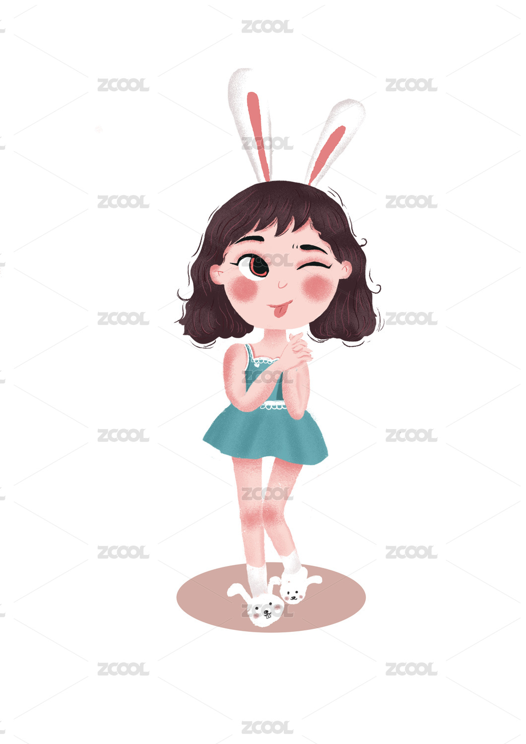 可爱,女孩,清新,人物,儿童,Q版,插画,萌,兔子,剪刀手