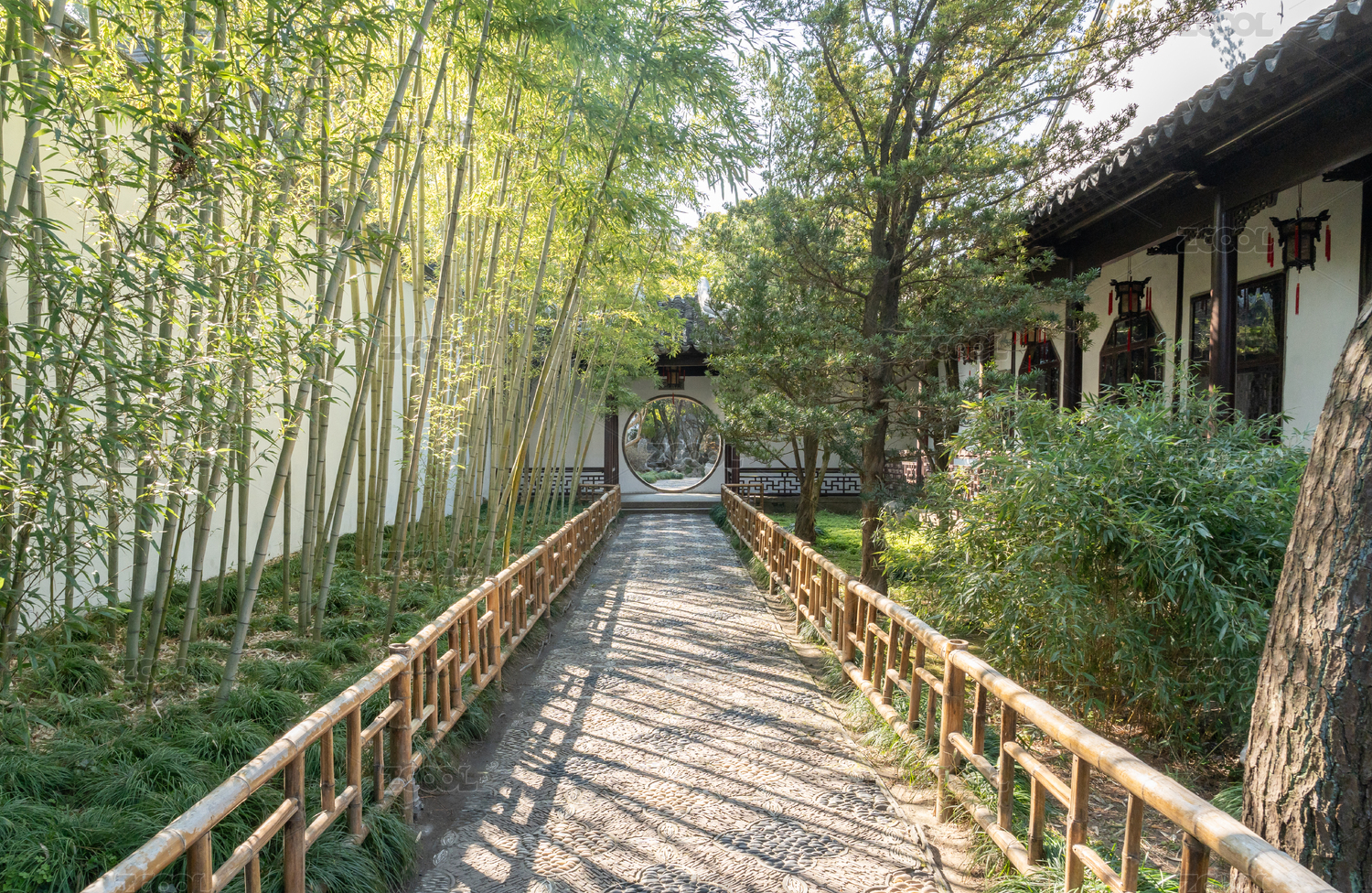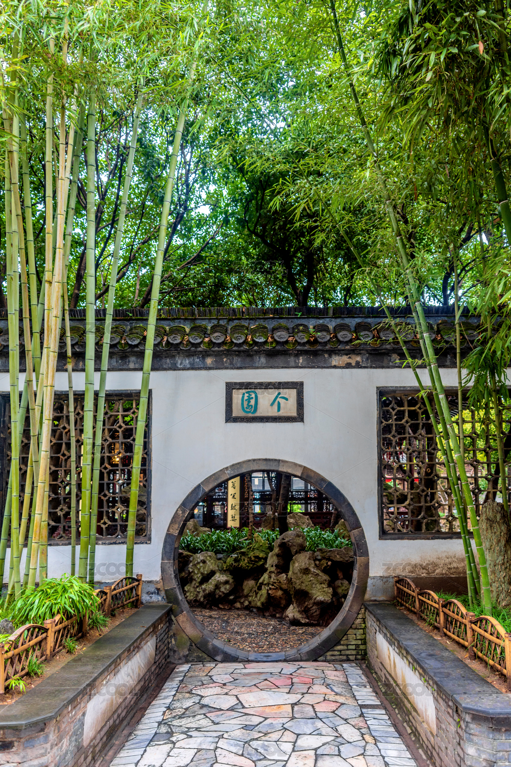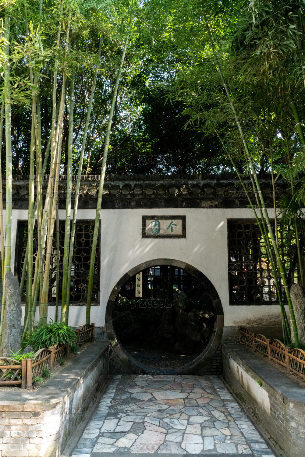 中式庭院复古风格建筑的圆形门墙